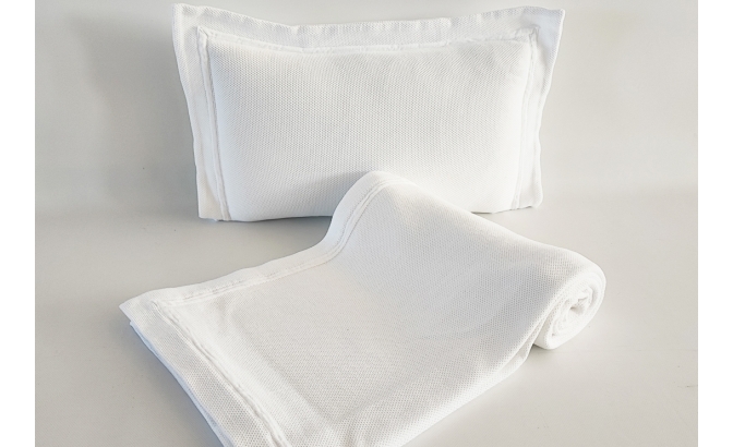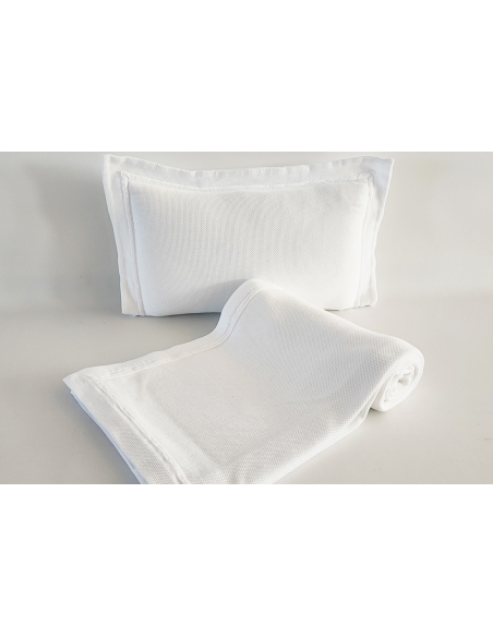 Washed and pre-shrunk "bee nest" blanket, which makes it very pleasant to the touch and practical, as it does not shrink when washed.