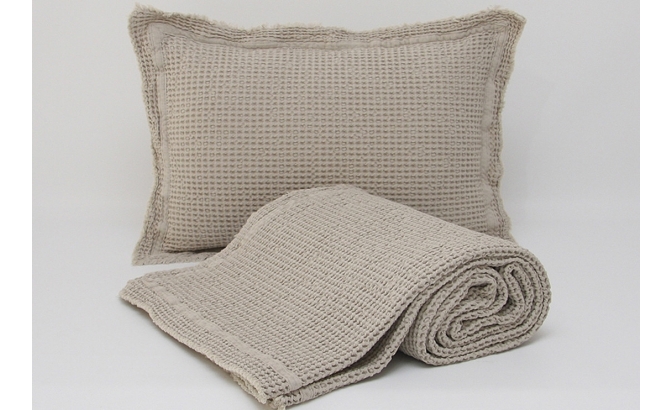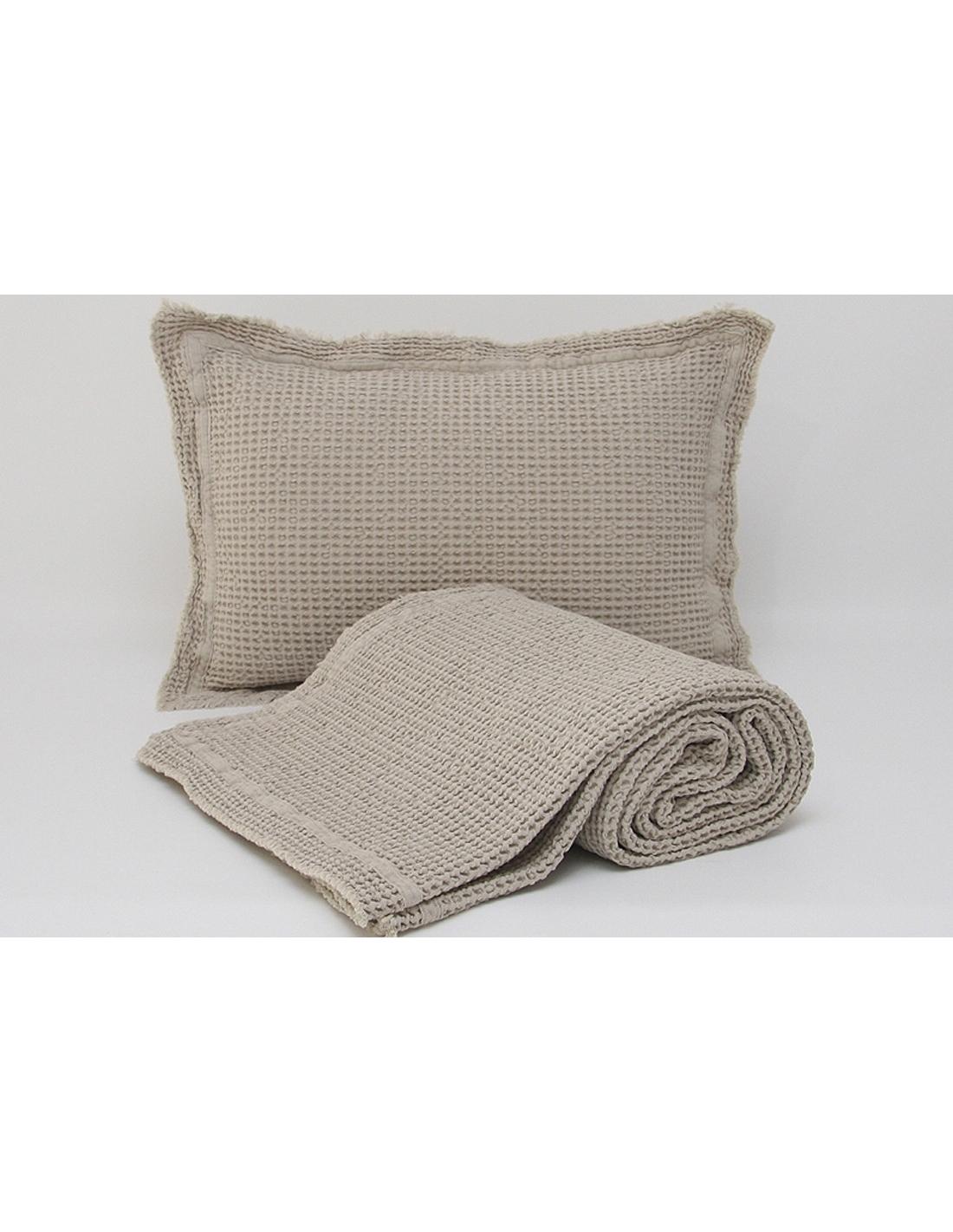 Washed and pre-shrunk "bee nest" blanket, which makes it very pleasant to the touch and practical, as it does not shrink when washed.
