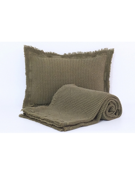 Washed and pre-shrunk "bee nest" blanket, which makes it very pleasant to the touch and practical, as it does not shrink when washed.