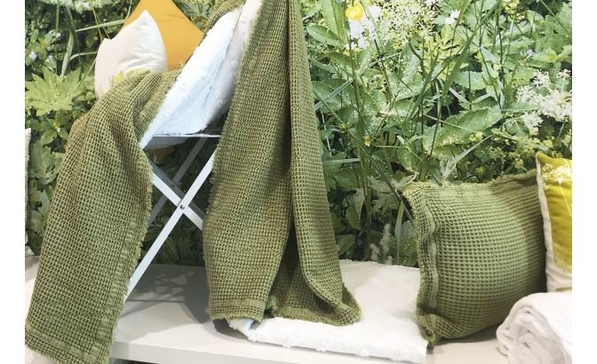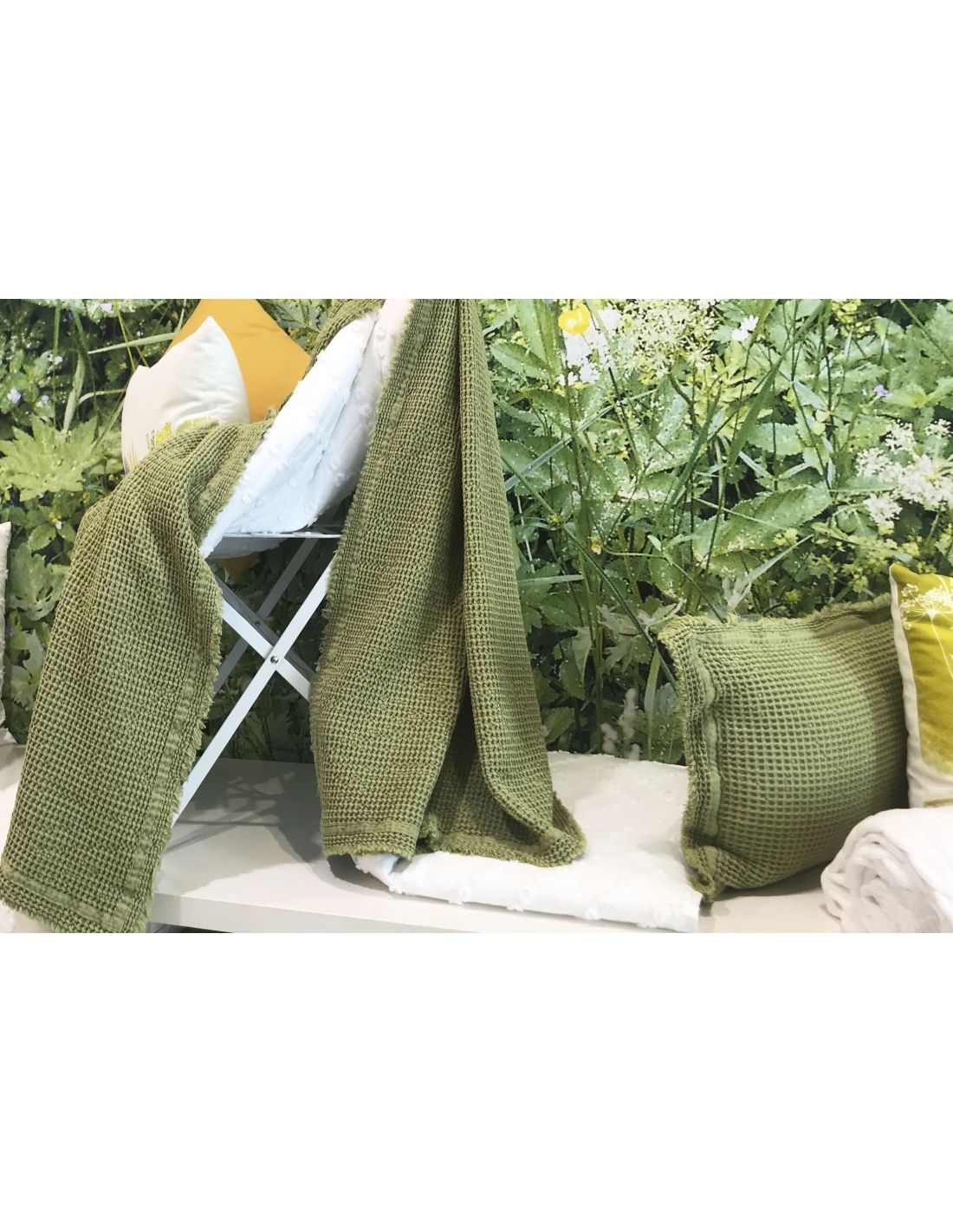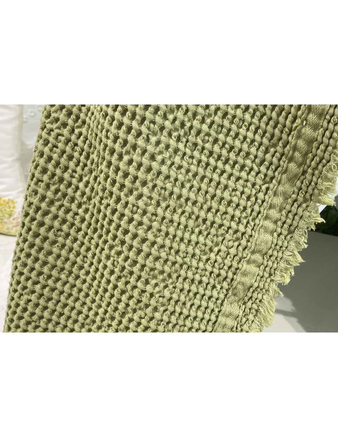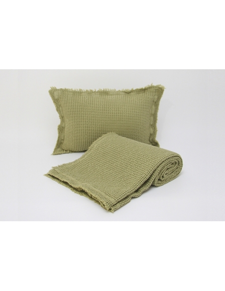 Washed and pre-shrunk "bee nest" blanket, which makes it very pleasant to the touch and practical, as it does not shrink when washed.