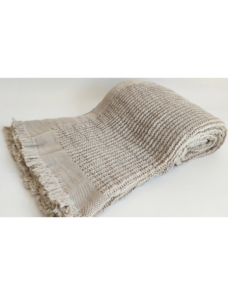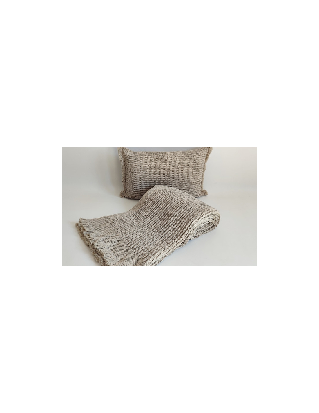 Pre-shrunk cotton blanket with fringe trim, perfect for adding a cozy and decorative touch to your space. Made with high-quality cotton, it offers softness and durability, as well as ensuring comfort in any season. Its fringed design at the ends brings a special charm, making it ideal for use on sofas, beds or as a decorative piece. An elegant and practical choice to make your space more welcoming.