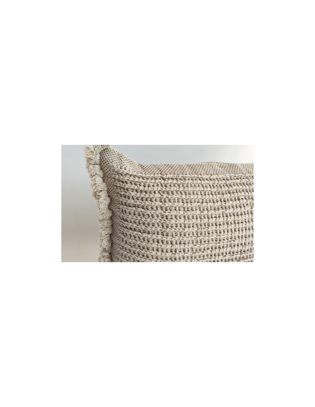 Cushion cover with "honeycomb" stitch, washed and pre-shrunk, which makes it very pleasant to the touch and practical, as it does not shrink when washed. As it has a nalast tape around the entire perimeter of the pillow, it does not deform or fray.