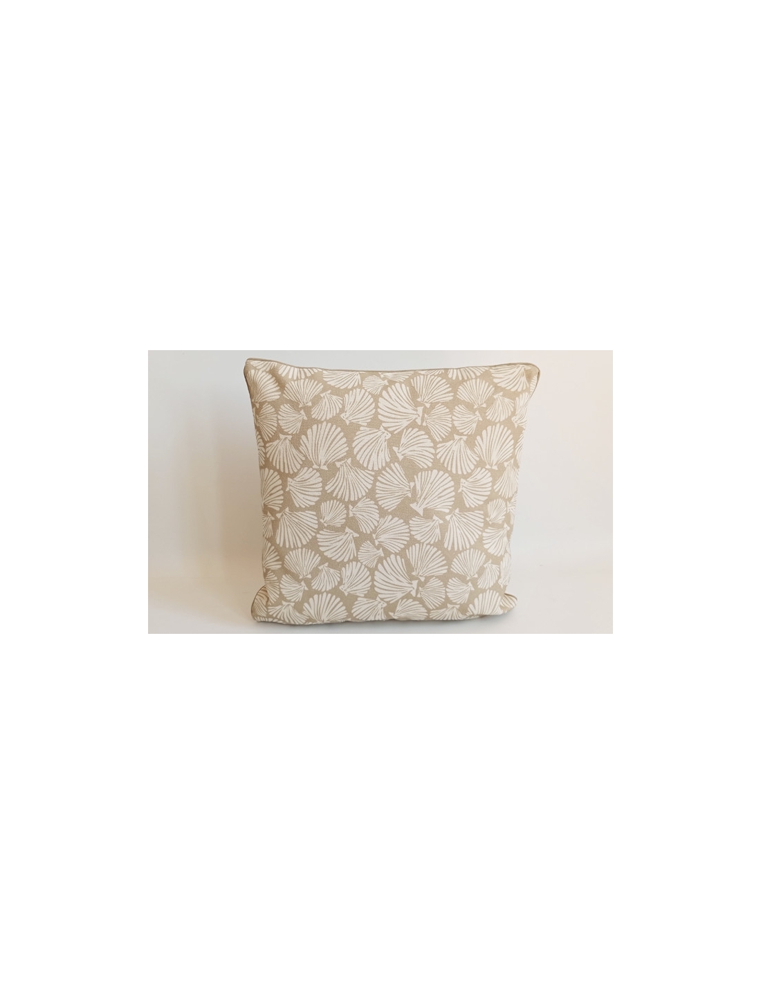 Cushion with filling included, printed on one side and plain on the back. Drawstring finish around the edge. Bottom zip.