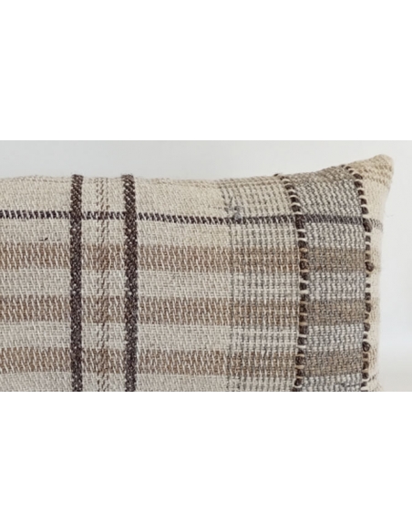 Braided wool cushion cover with a striped design. Canvas back. Concealed half-length zipper with flap.