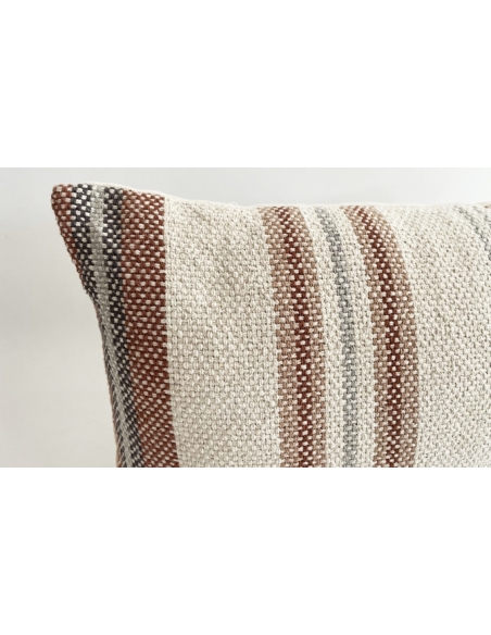Heavyweight cotton cushion cover with woven stripes in earth tones. Plain canvas back with a concealed mid-length zipper and flap. Each cushion may have slight color variations due to the dyeing process and screen display.