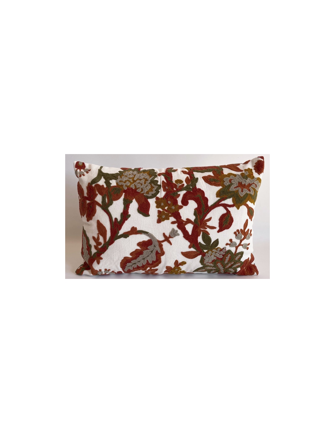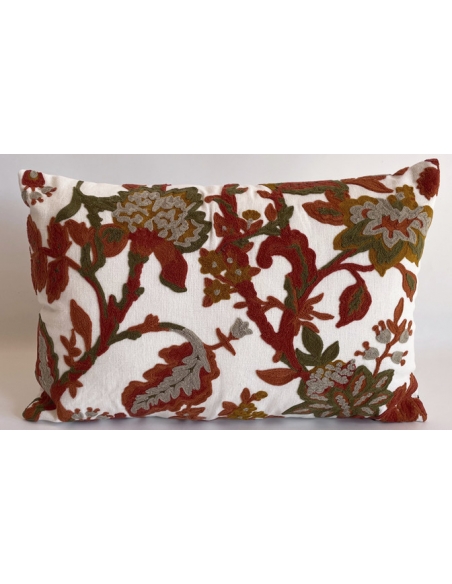 Cushion cover with embroidered front and plain back in the same color as the background.