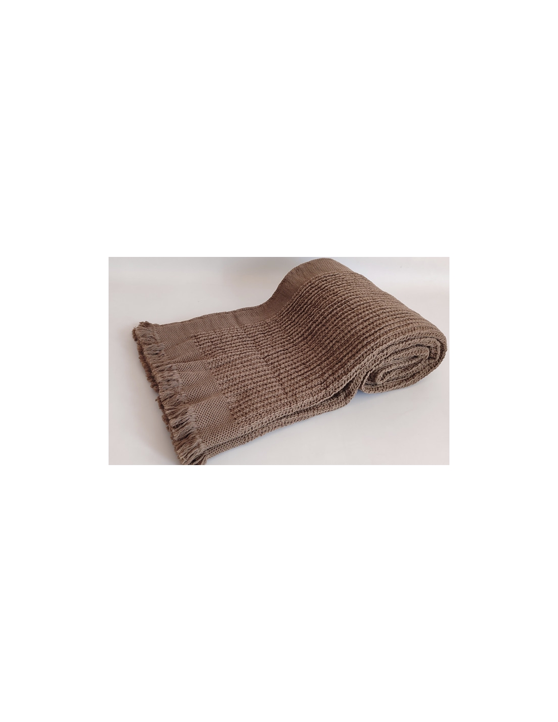 Pre-shrunk cotton blanket with fringe trim, perfect for adding a cozy and decorative touch to your space. Made with high-quality cotton, it offers softness and durability, as well as ensuring comfort in any season. Its fringed design at the ends brings a special charm, making it ideal for use on sofas, beds or as a decorative piece. An elegant and practical choice to make your space more welcoming.