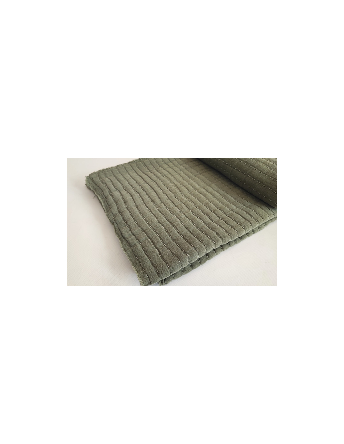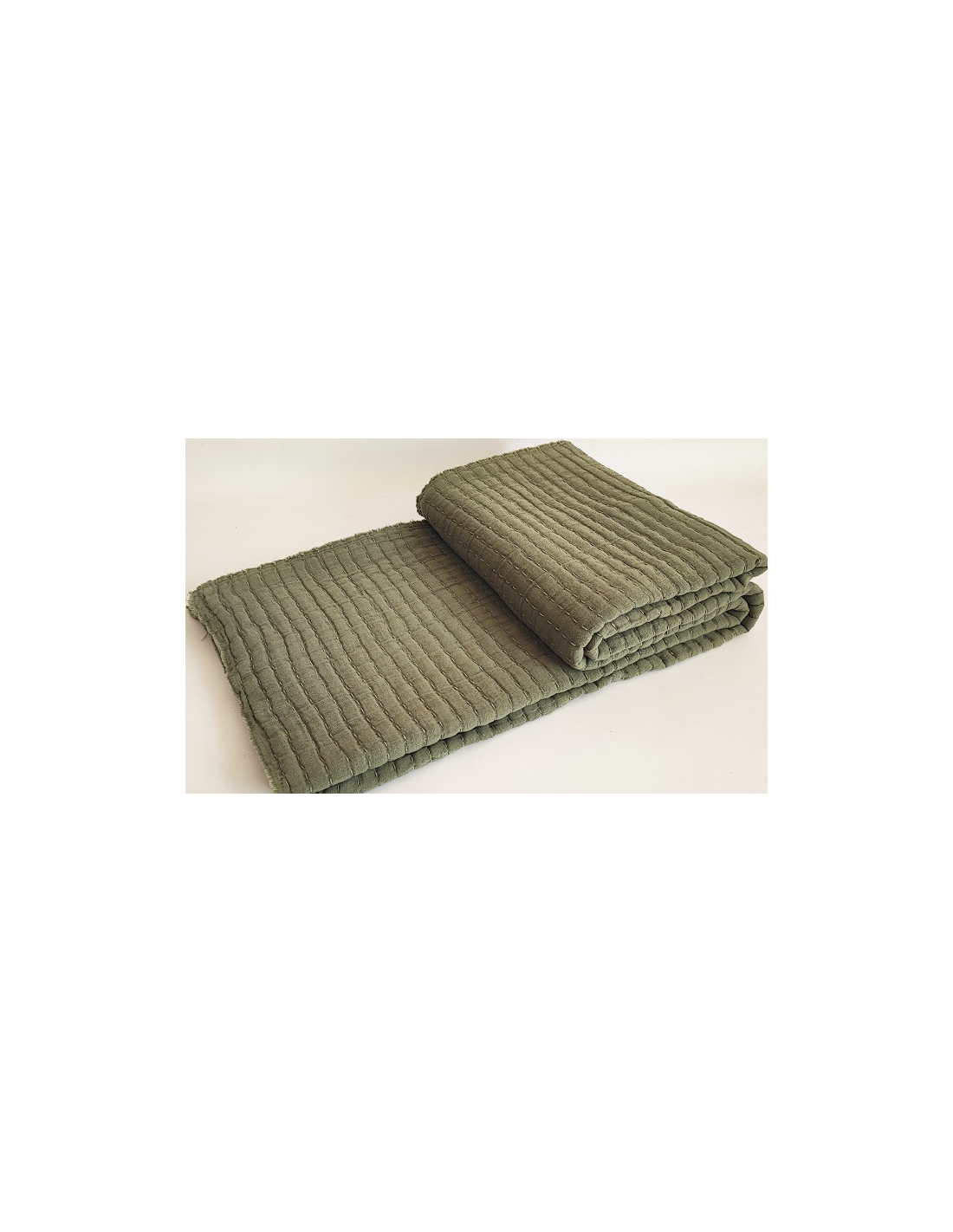 Cotton blanket with frayed edges and Kantha stitching, giving it a soft and rustic quilted effect.