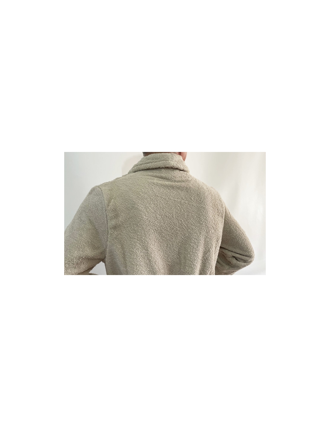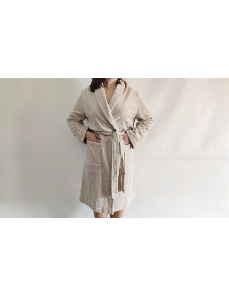 Bathrobe in highly absorbent and comfortable cotton, made from ketten. With this manufacturing system, the wire loop does not come loose and does not snag.