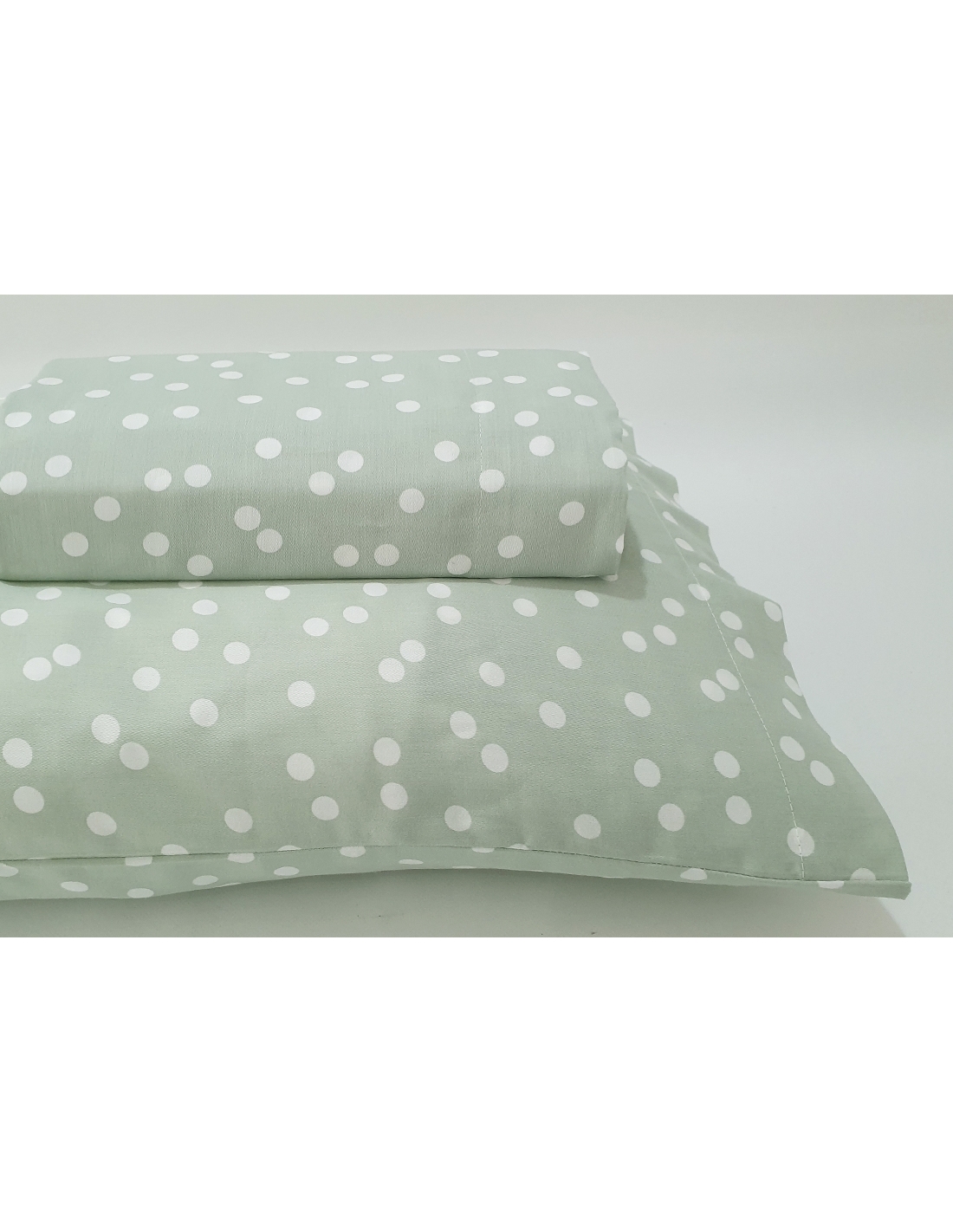 SATIN 200 THREADS TOP SHEET WITH PILLOWS GREEN WITH WHITE SPOTS