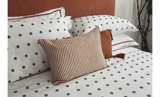 Duvet bag 100% cotton with design and back in 200 thread count percale, as well as pillows in different sizes.