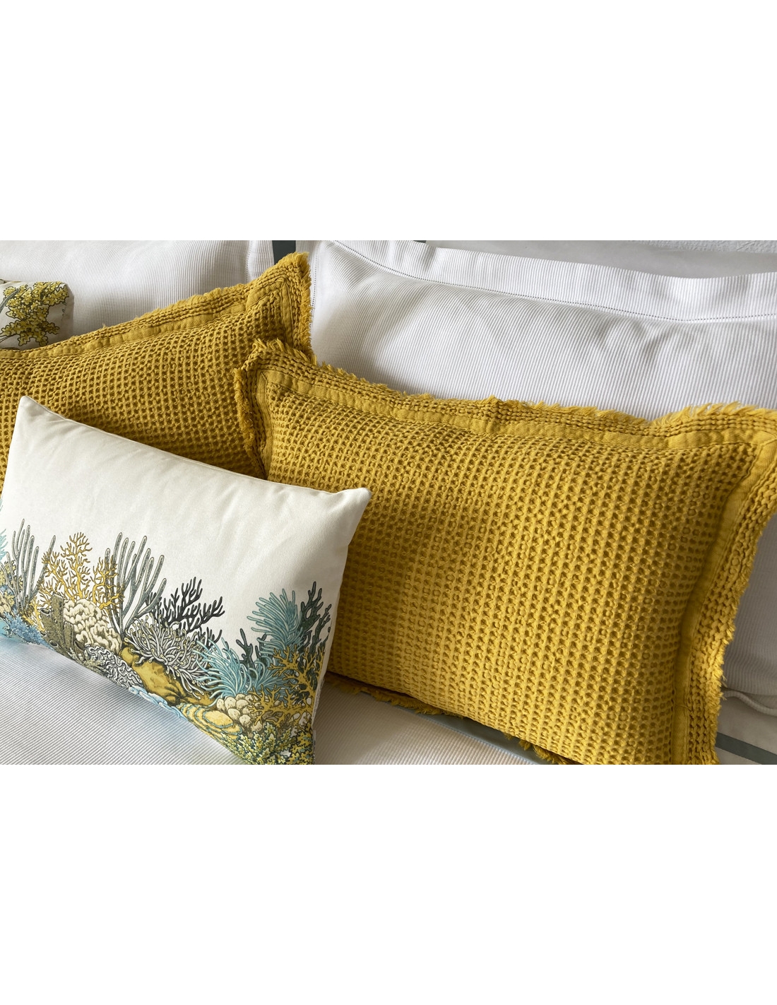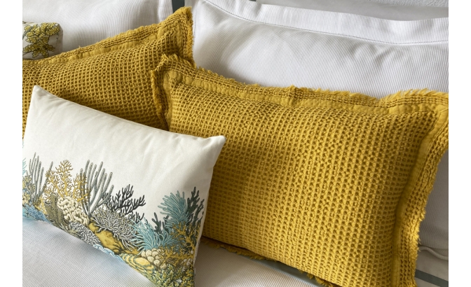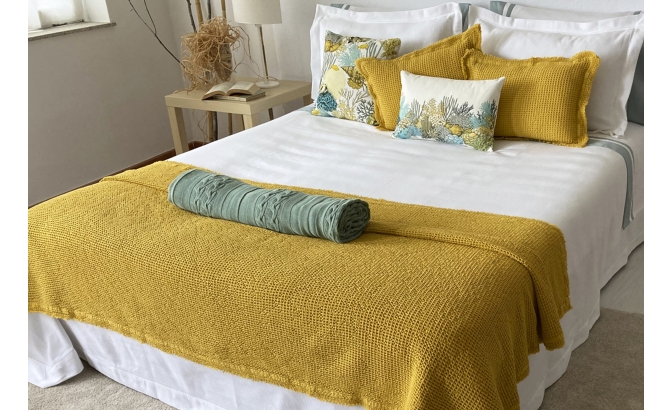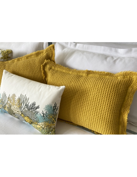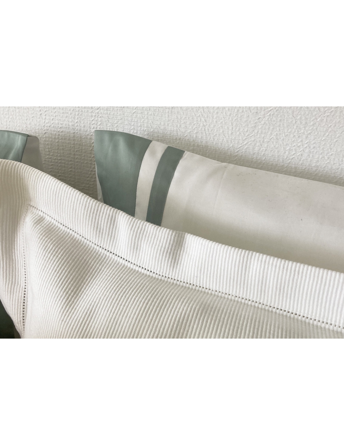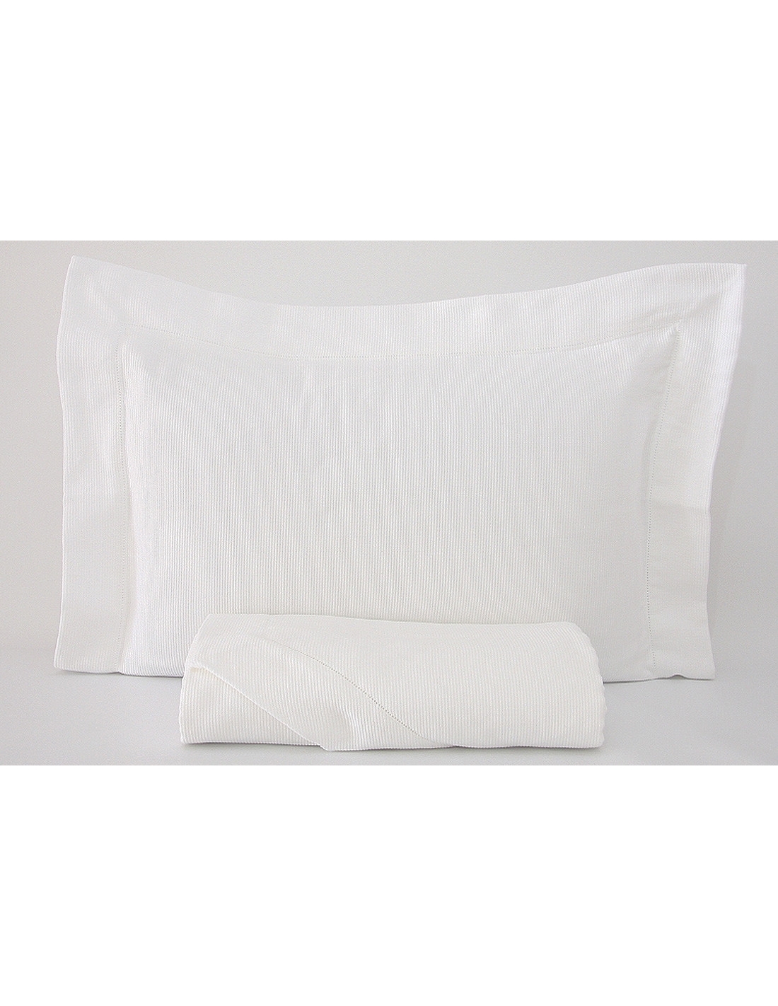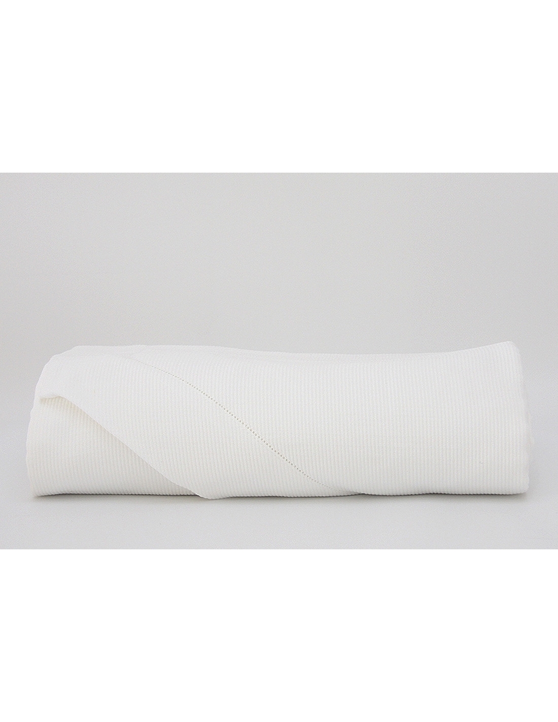 Cotton quilt with ribbed piqué texture. Finished with an 8cm hem, finished with an open stitch and cut corners.