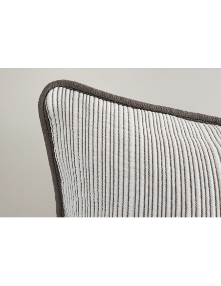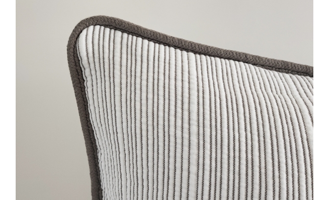Cushion cover with a light striped design and finished all around with a drawstring.