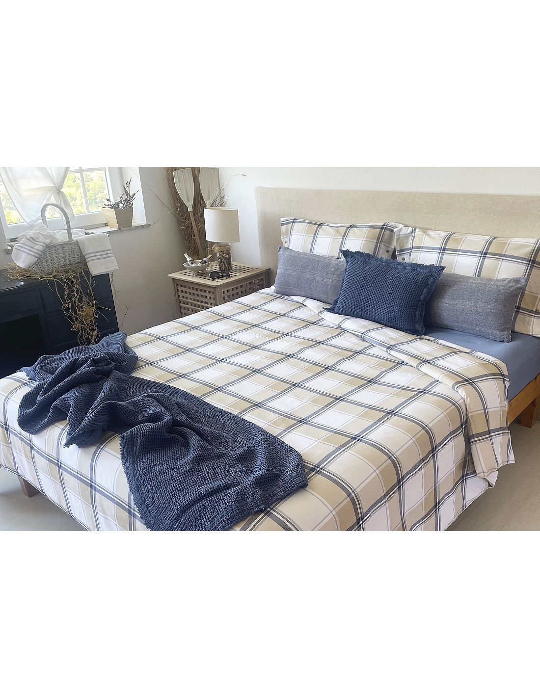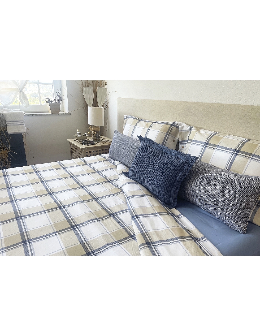 The bag closes with a 0.45 cm flap at the bottom to place under the mattress or make an envelope, preventing it from sliding around. The cushions close with buttons on both sides.