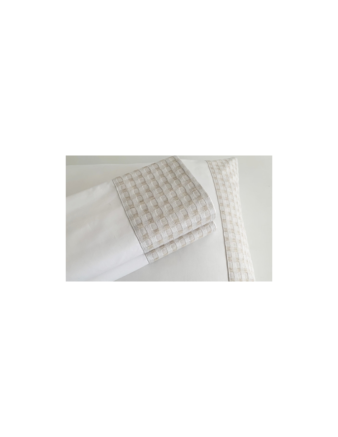 Top sheet and pillows with color bars. The cushions are applied on both sides and close with a flap.