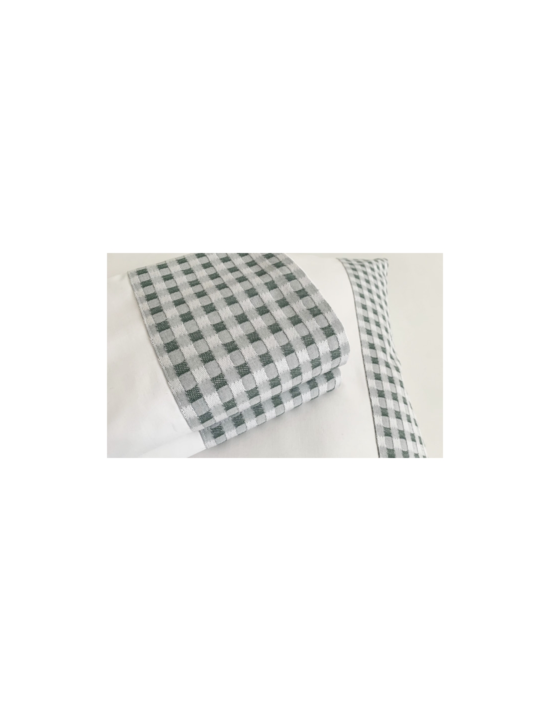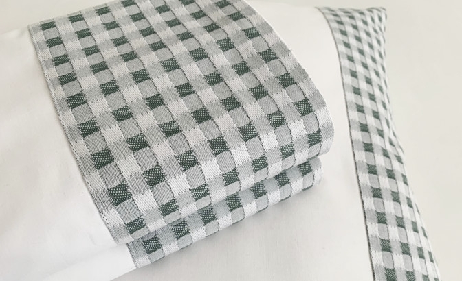 Top sheet and pillows with color bars. The cushions are applied on both sides and close with a flap.