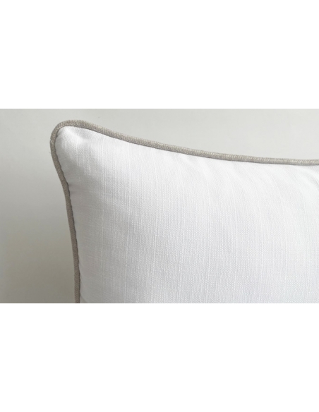 Cushion cover with a light striped design and finished all around with a drawstring.