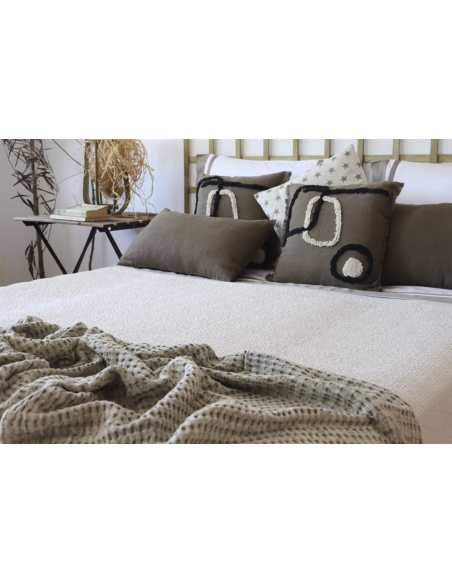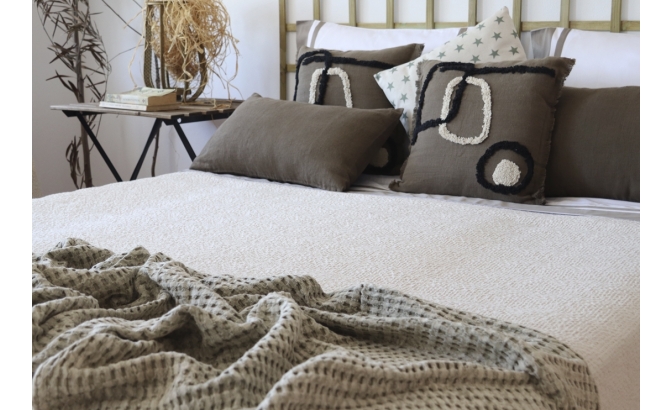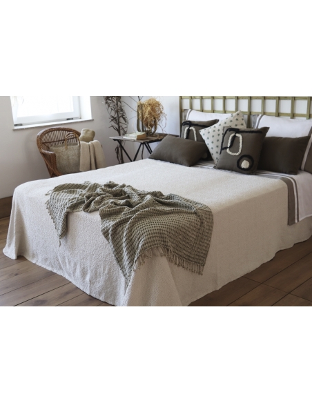 Bedspread with stonewash treatment, which provides natural and definitive shrinkage. This allows it to be washed frequently, without shrinking and without the need for ironing!!