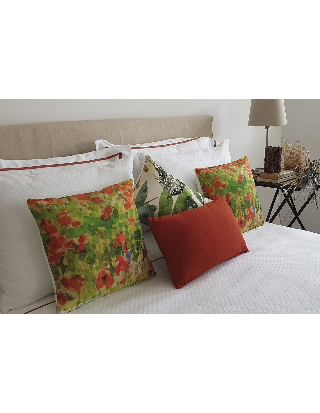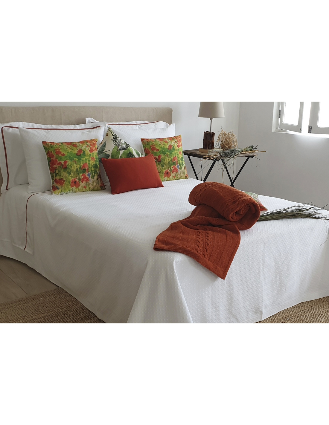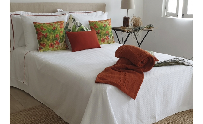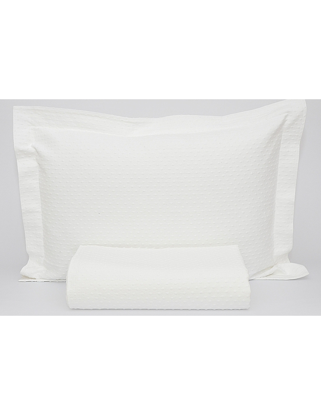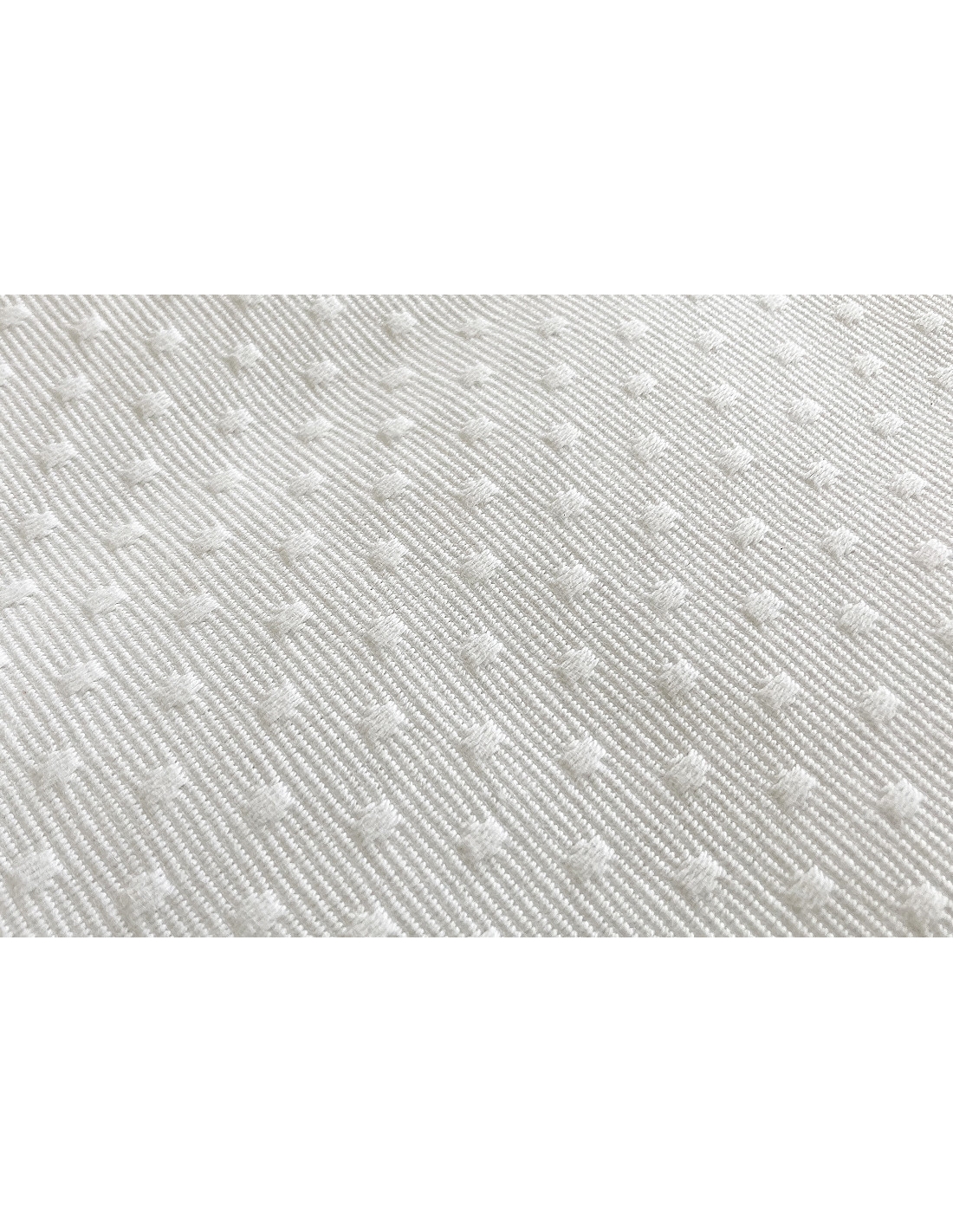 Cotton quilt with piqué texture and embossed polka dots. Finishing with cut corners and four-needle manufacturing.