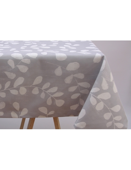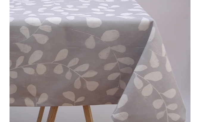 Printed tablecloth with anti-stain and anti-wrinkle treatment.