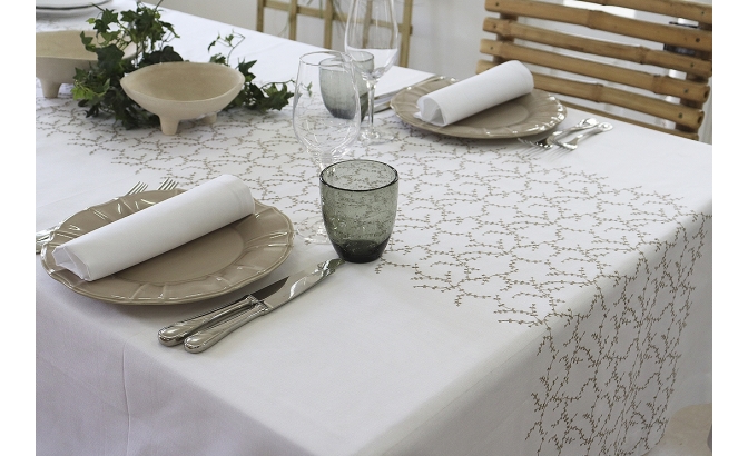 Plain tablecloth with embroidery.