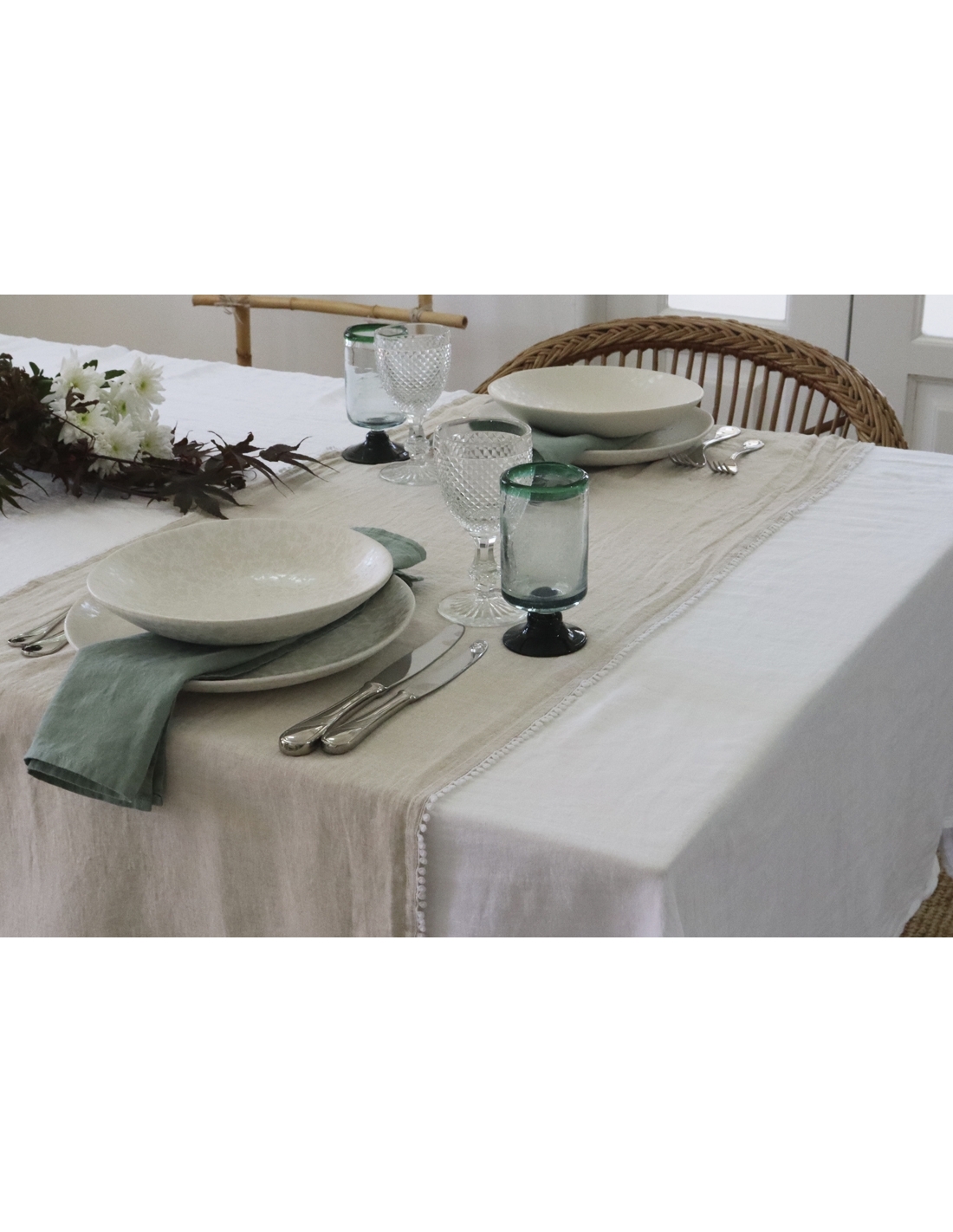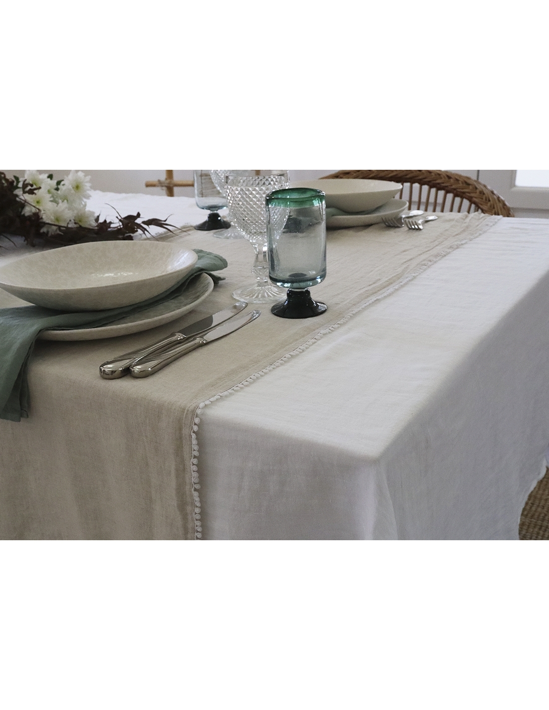 White washed linen tablecloth