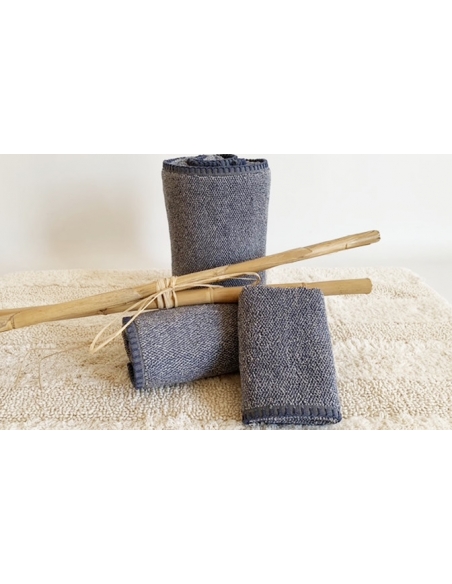Three-piece towel set. Towels with contrasting woven stitch detail on the edge.