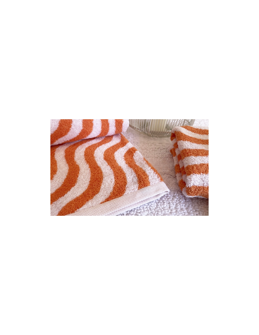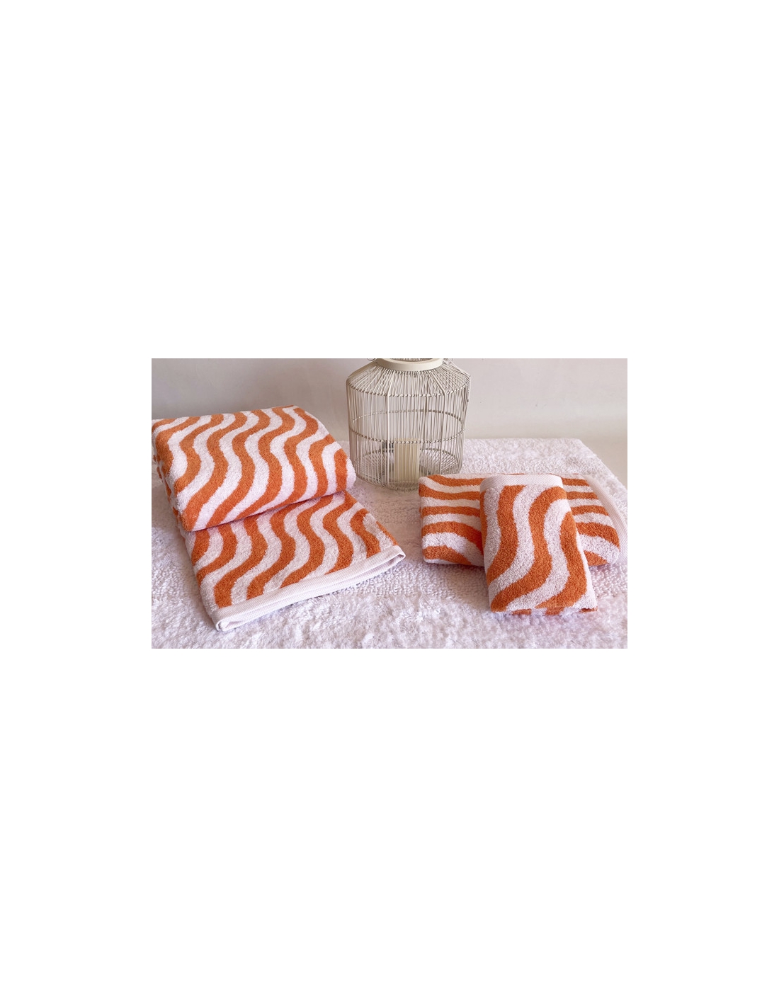 Set of soft and absorbent cotton towels with a flowing wave pattern that adds a fresh and contemporary touch to the bathroom.