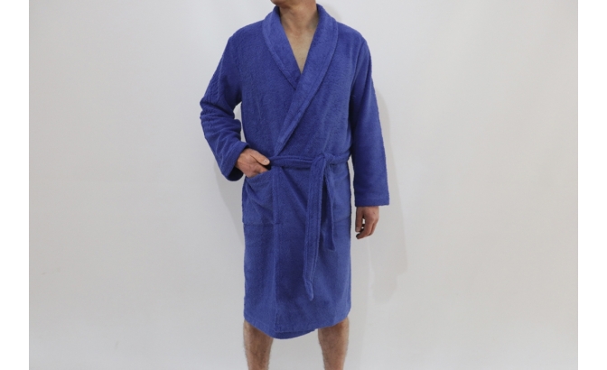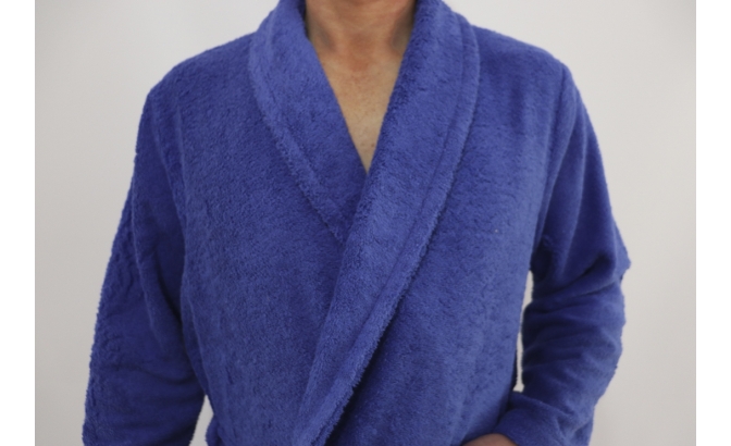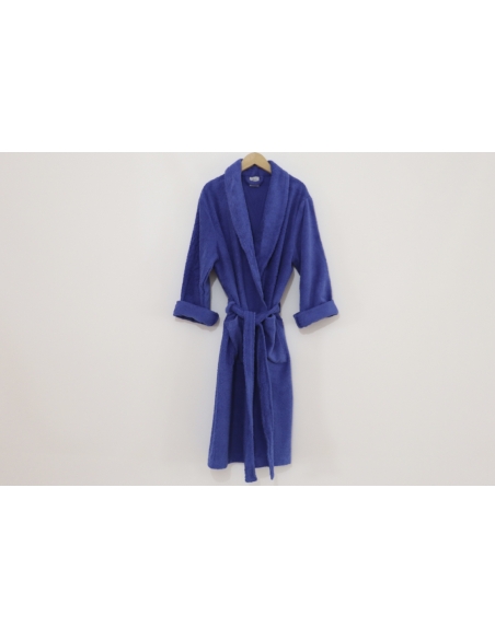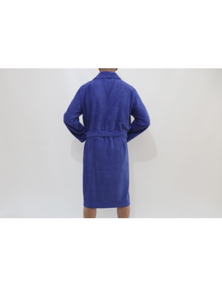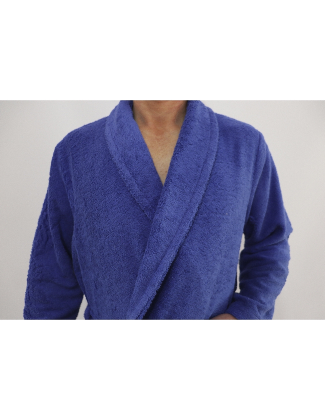 Albornoz de algodón muy absorbente y confortable, confeccionado en ketten. Con este sistema de fabricación, el lazo de alambre no se suelta ni se engancha.