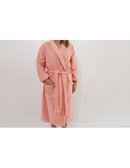 Albornoz de algodón muy absorbente y confortable, confeccionado en ketten. Con este sistema de fabricación, el lazo de alambre no se suelta ni se engancha.