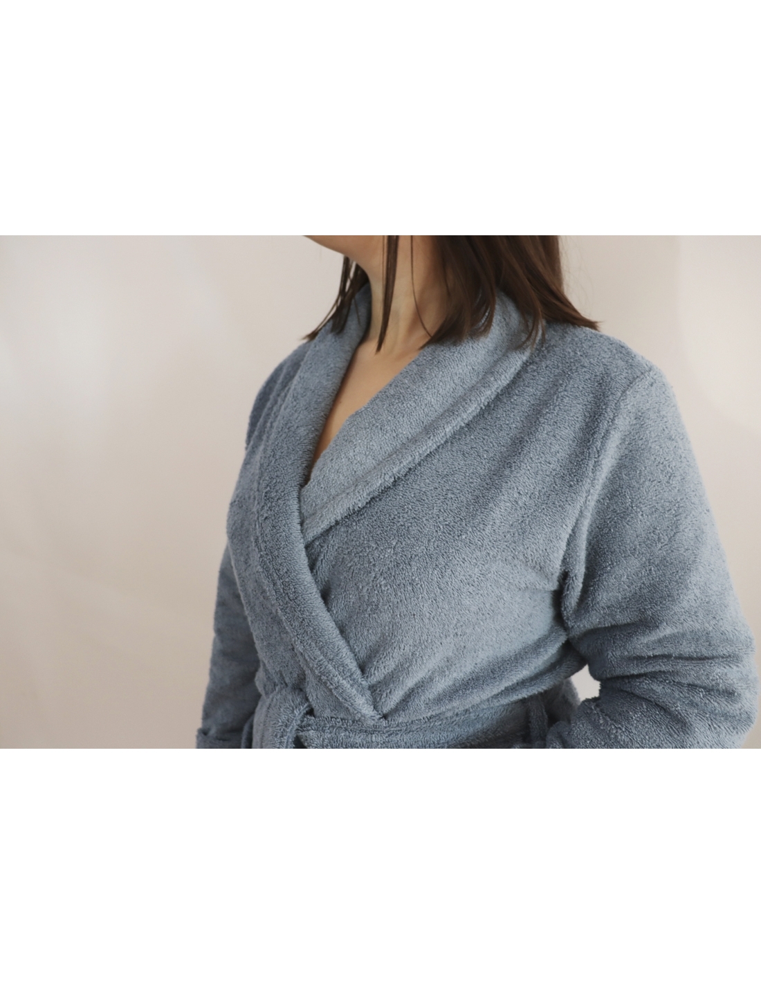 Albornoz de algodón muy absorbente y confortable, confeccionado en ketten. Con este sistema de fabricación, el lazo de alambre no se suelta ni se engancha.