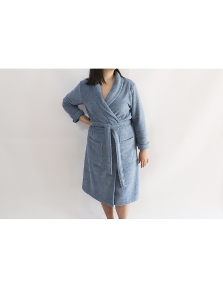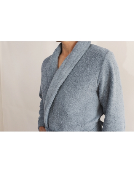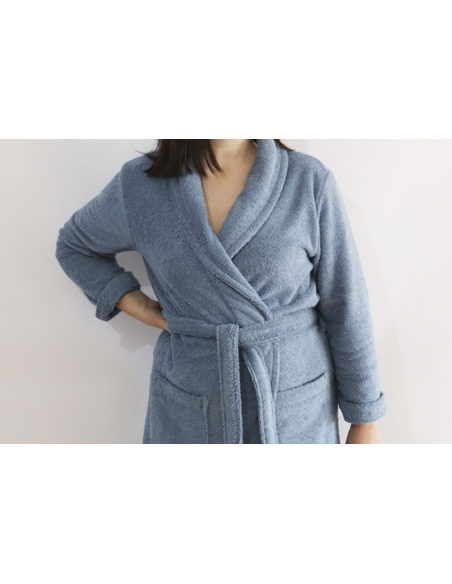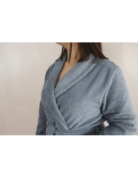 Albornoz de algodón muy absorbente y confortable, confeccionado en ketten. Con este sistema de fabricación, el lazo de alambre no se suelta ni se engancha.