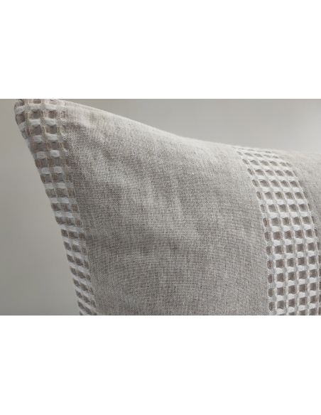 Funda de cojín con textura piqué y diseño de nido de abeja haciendo rayas.