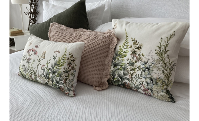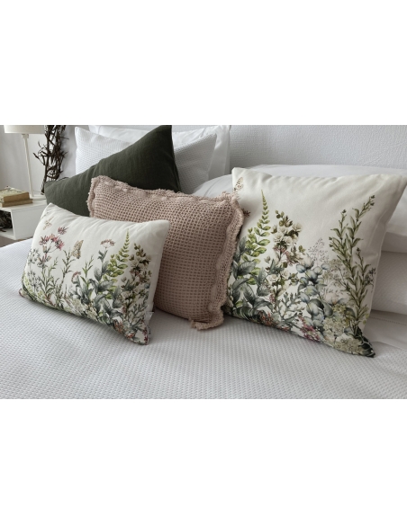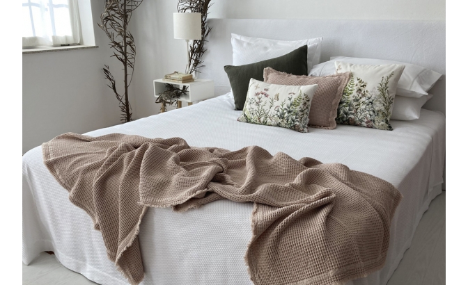 Colcha de algodón con textura de piqué y diseño de nido de abeja. Terminado con esquinas cortadas.