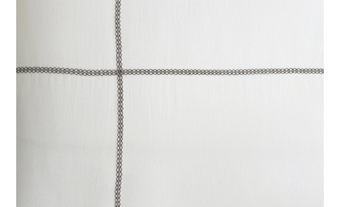 Funda nórdica y almohadas lisas con bordados de cordón de colores. Los cojines tienen bordados en tres lados y se cierran con una solapa.