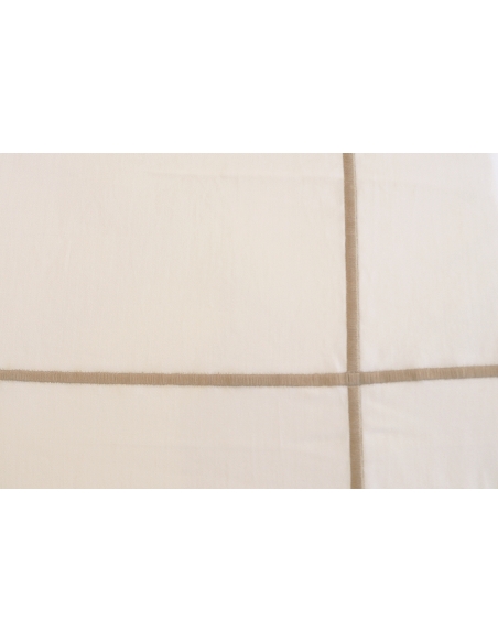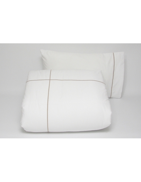 Funda nórdica y almohadas lisas con bordados de cordón de colores. Los cojines tienen bordados en un lado y se cierran con una solapa.