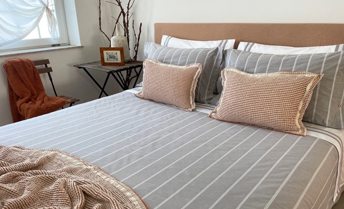 Funda nórdica 100% algodón con diseño y del revés en percal de 200 hilos, así como almohadas en diferentes tamaños.