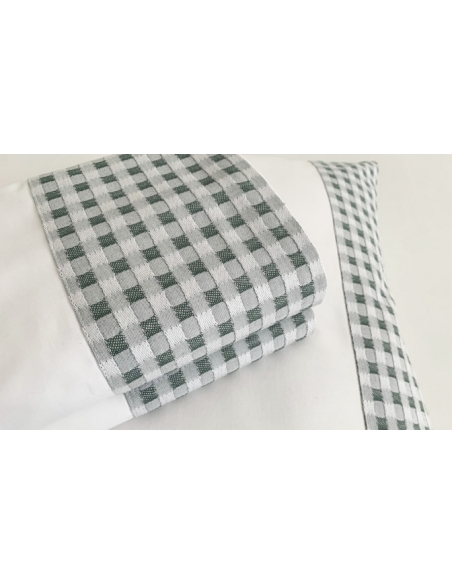 Sabana encimera c/almohadas en 200 hilos percale Vichy verde