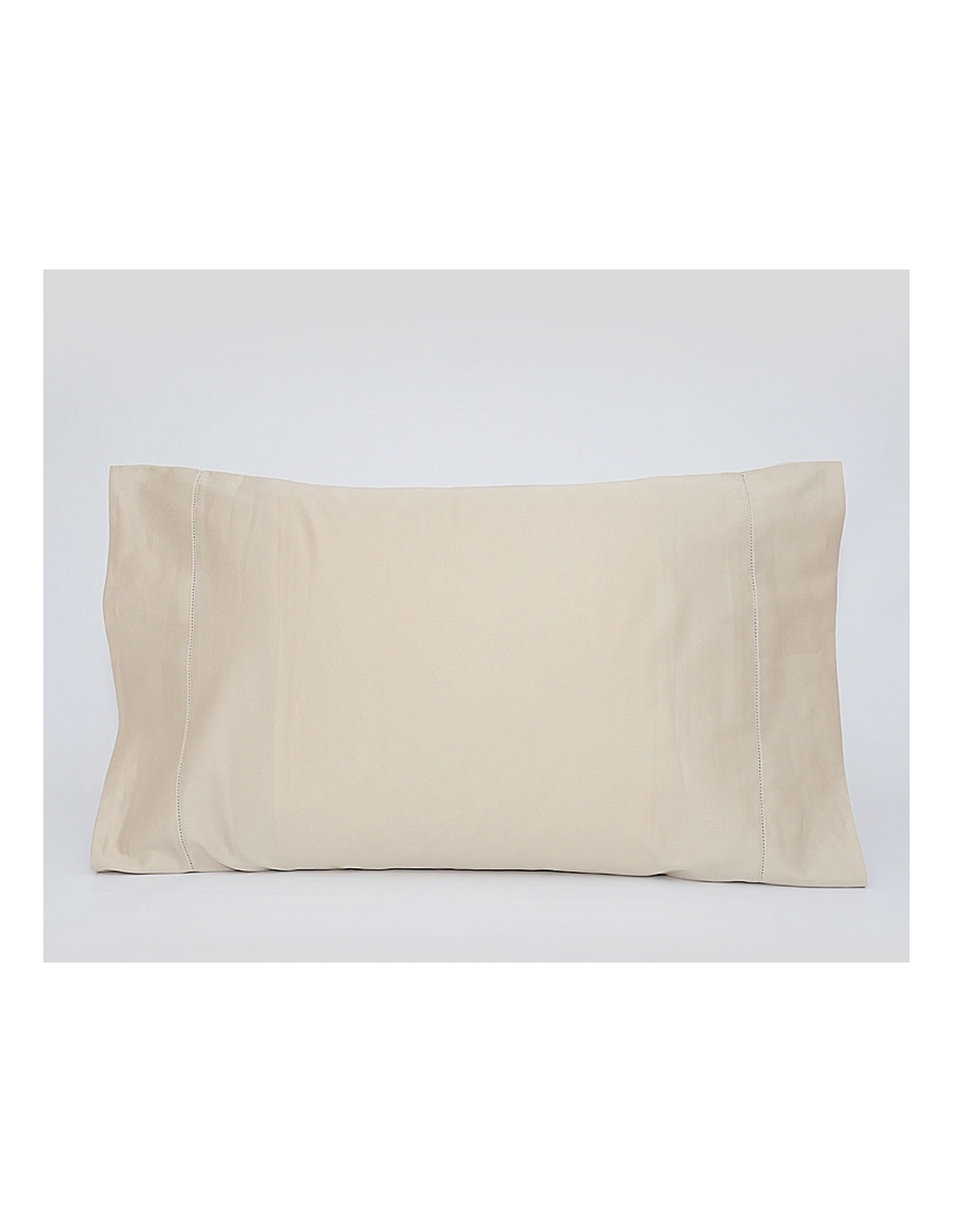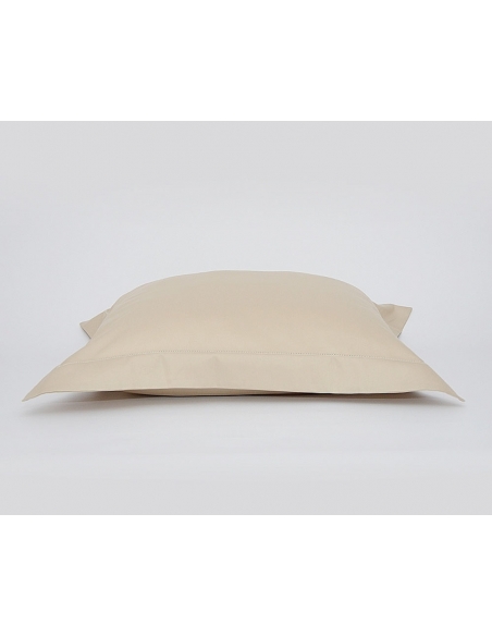 Funda de almohada con puntada ajour. Las almohadas cuadradas están bordadas alrededor con una visera de 5 cm y se cierran con una solapa. Las almohadas rectangulares tienen aplicación de bordado en ambos lados y se cierran con dos solapas.