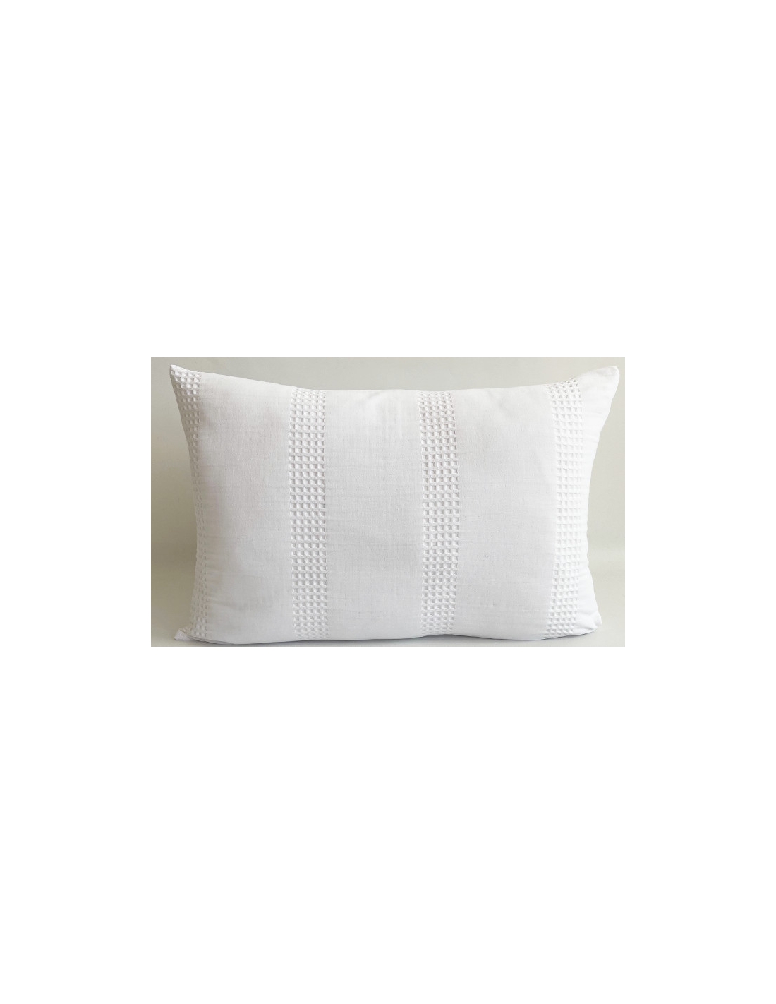 Funda de cojín con textura piqué y diseño de nido de abeja haciendo rayas.