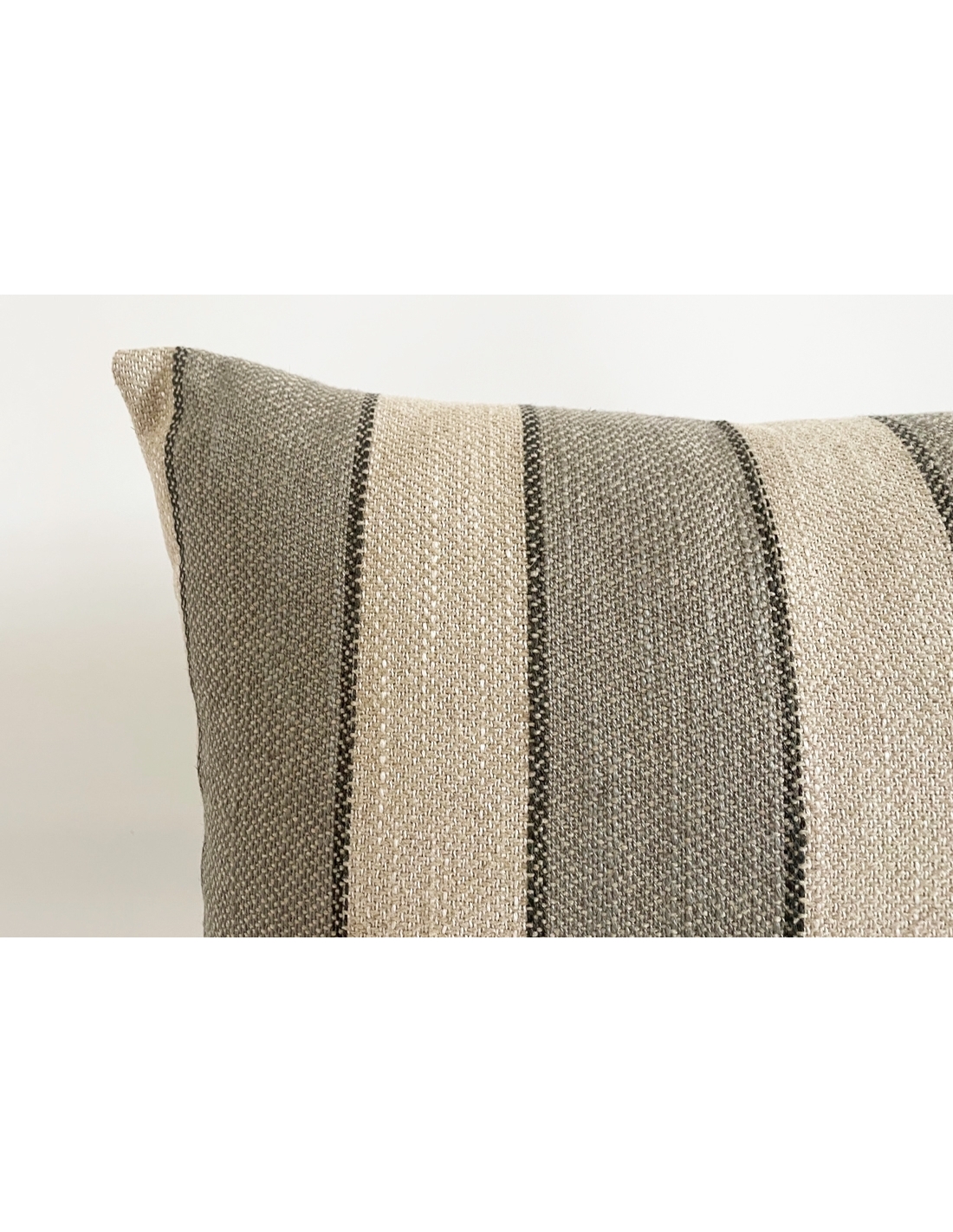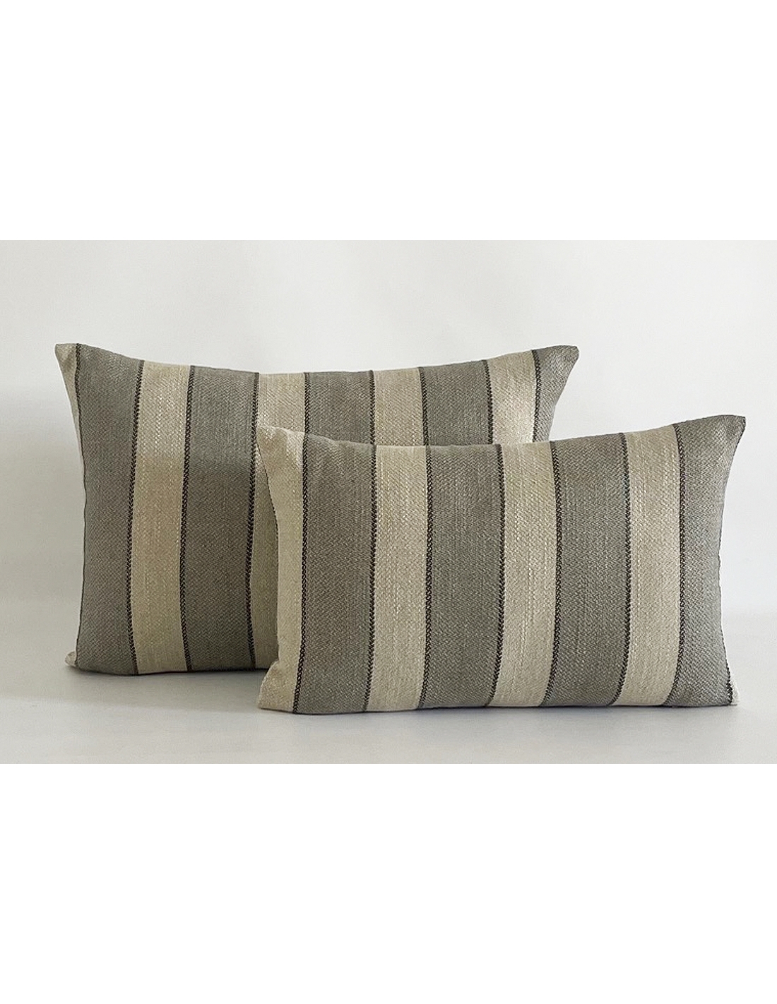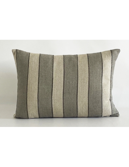 Funda de cojín reversible, con rayas en ambos lados y cremallera en un extremo.