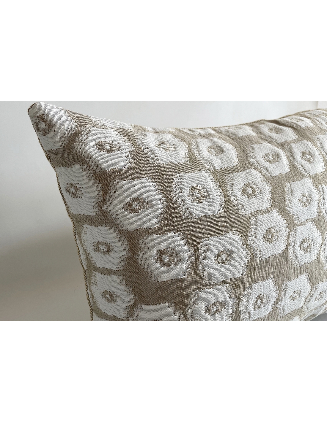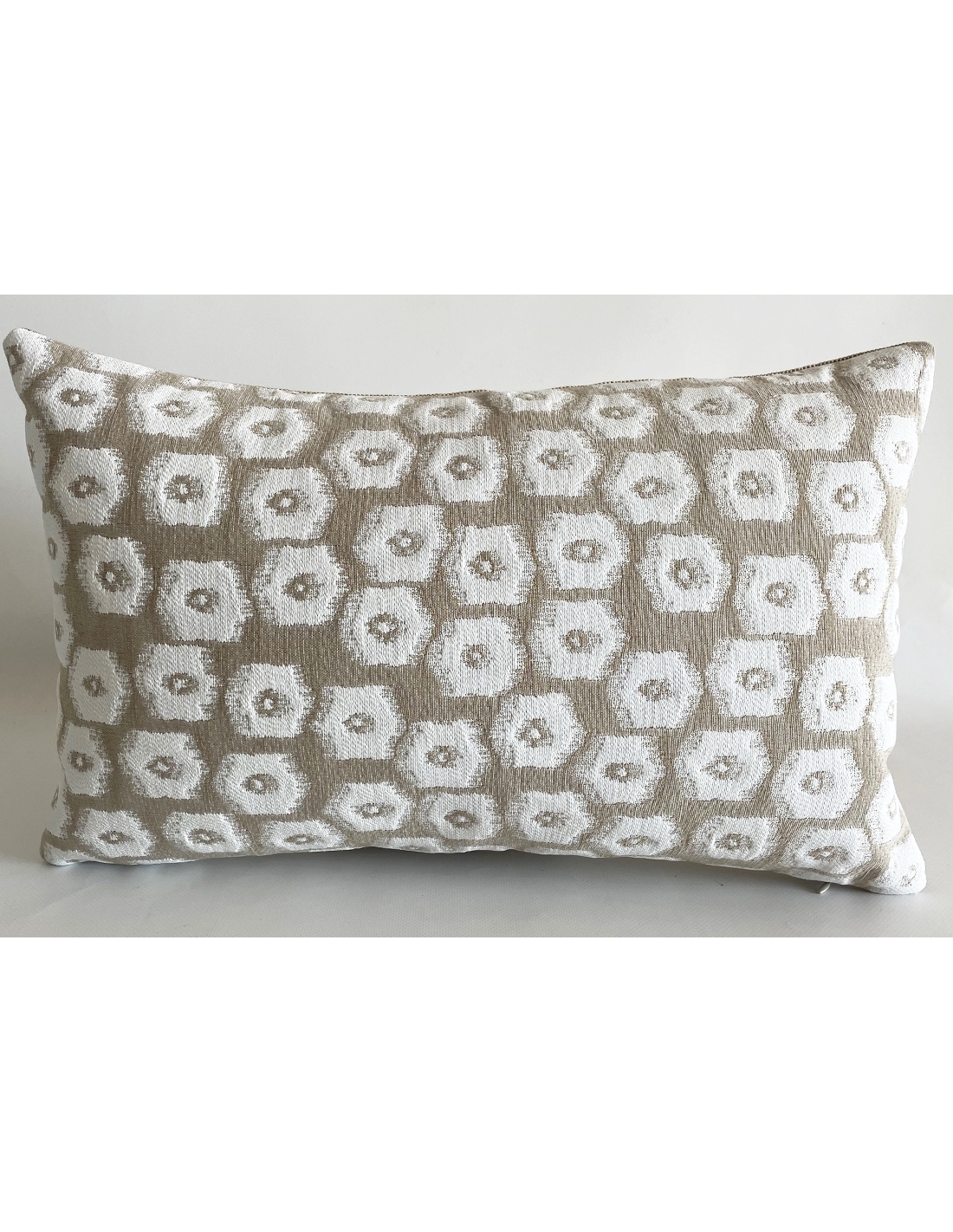 Funda de cojín de algodón con estampado en la parte delantera y trasera lisa, igual que el color de fondo. Tiene cremallera invisible en un lateral.
