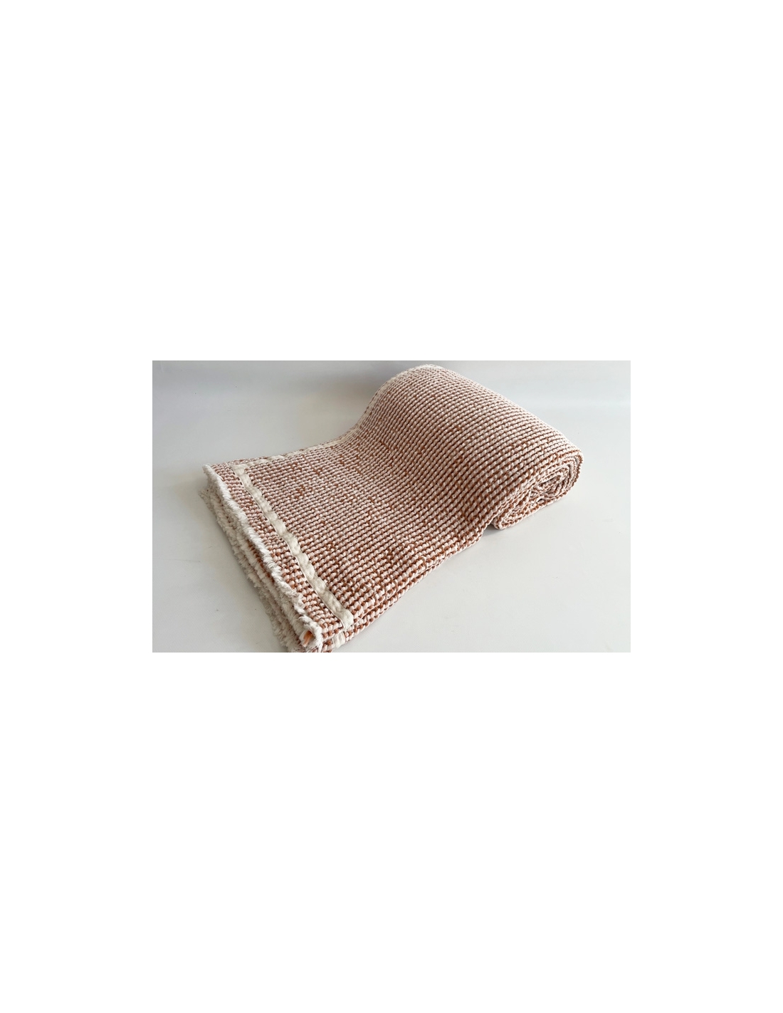 Manta com puntada "nido de abeja", lavada y preencojida, que la hace muy agradable al tacto y práctica, ya que no encoje al lavar.