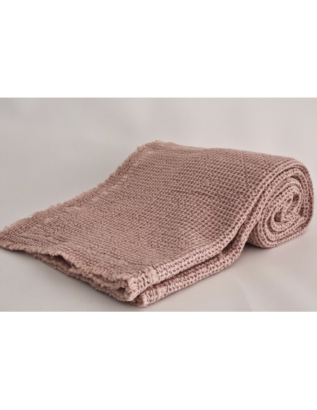 Manta com puntada "nido de abeja", lavada y preencojida, que la hace muy agradable al tacto y práctica, ya que no encoje al lavar.