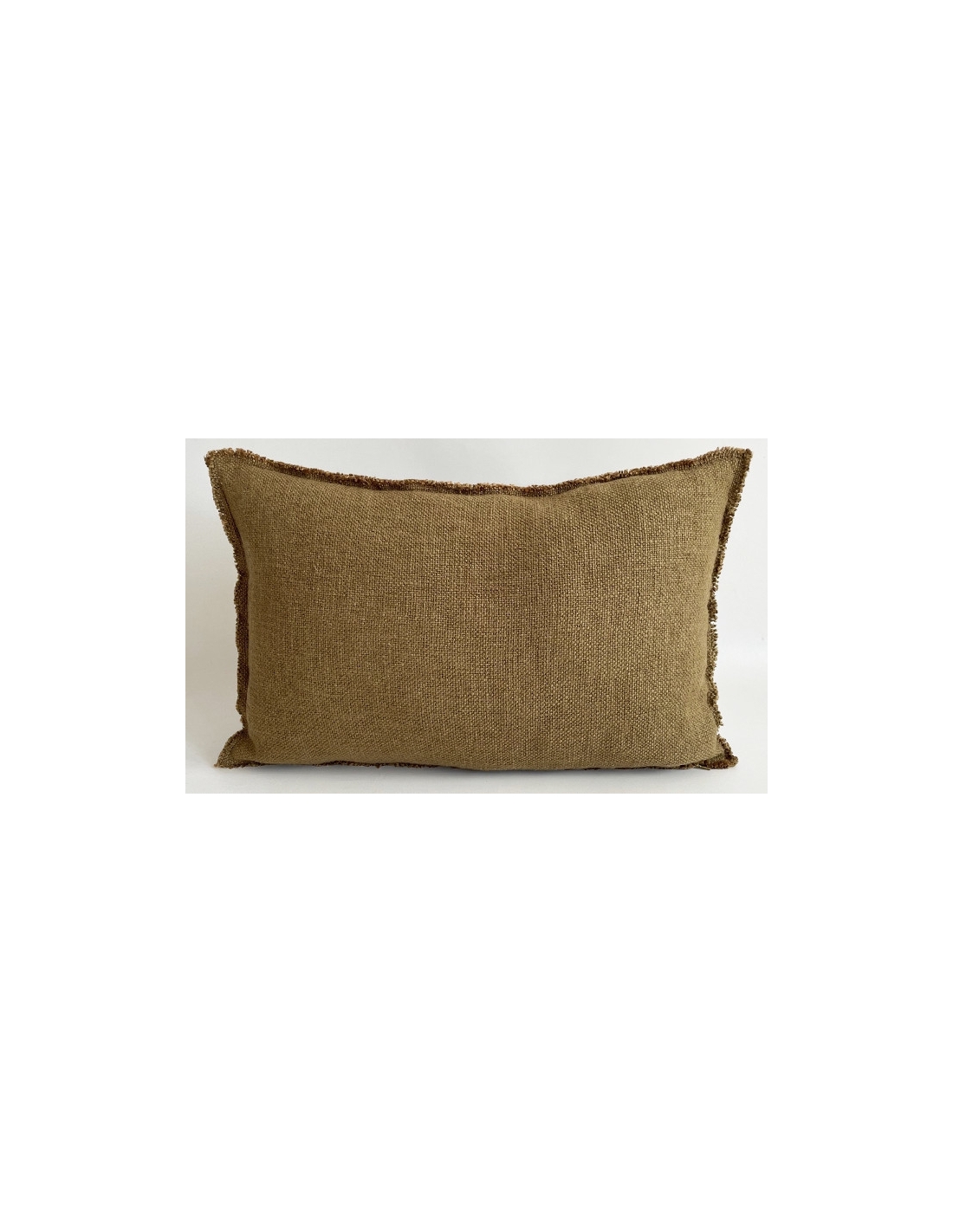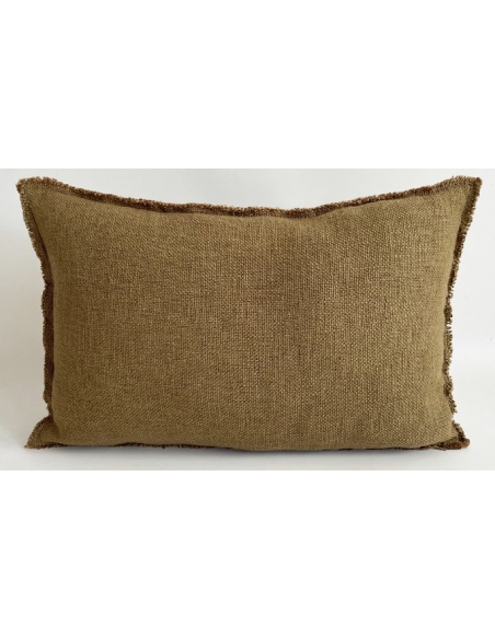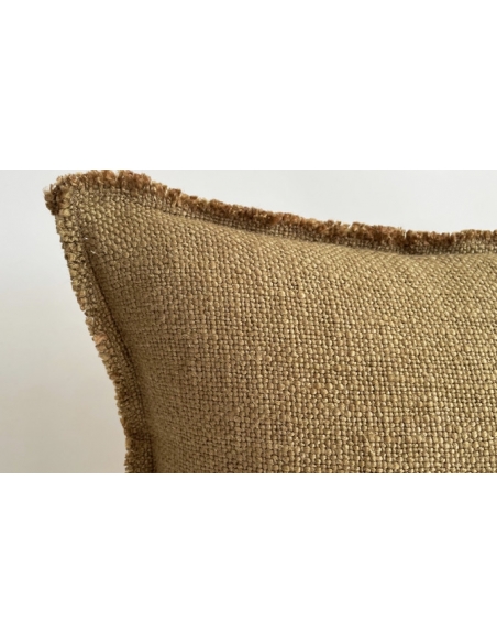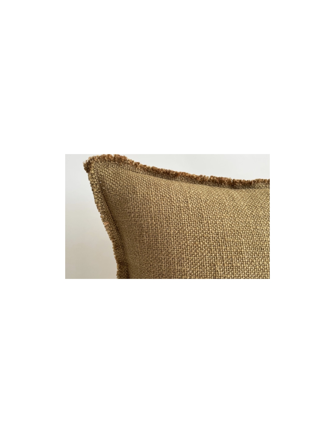 Funda de cojín lisa con flecos alrededor. Reversible y con cremallera invisible.