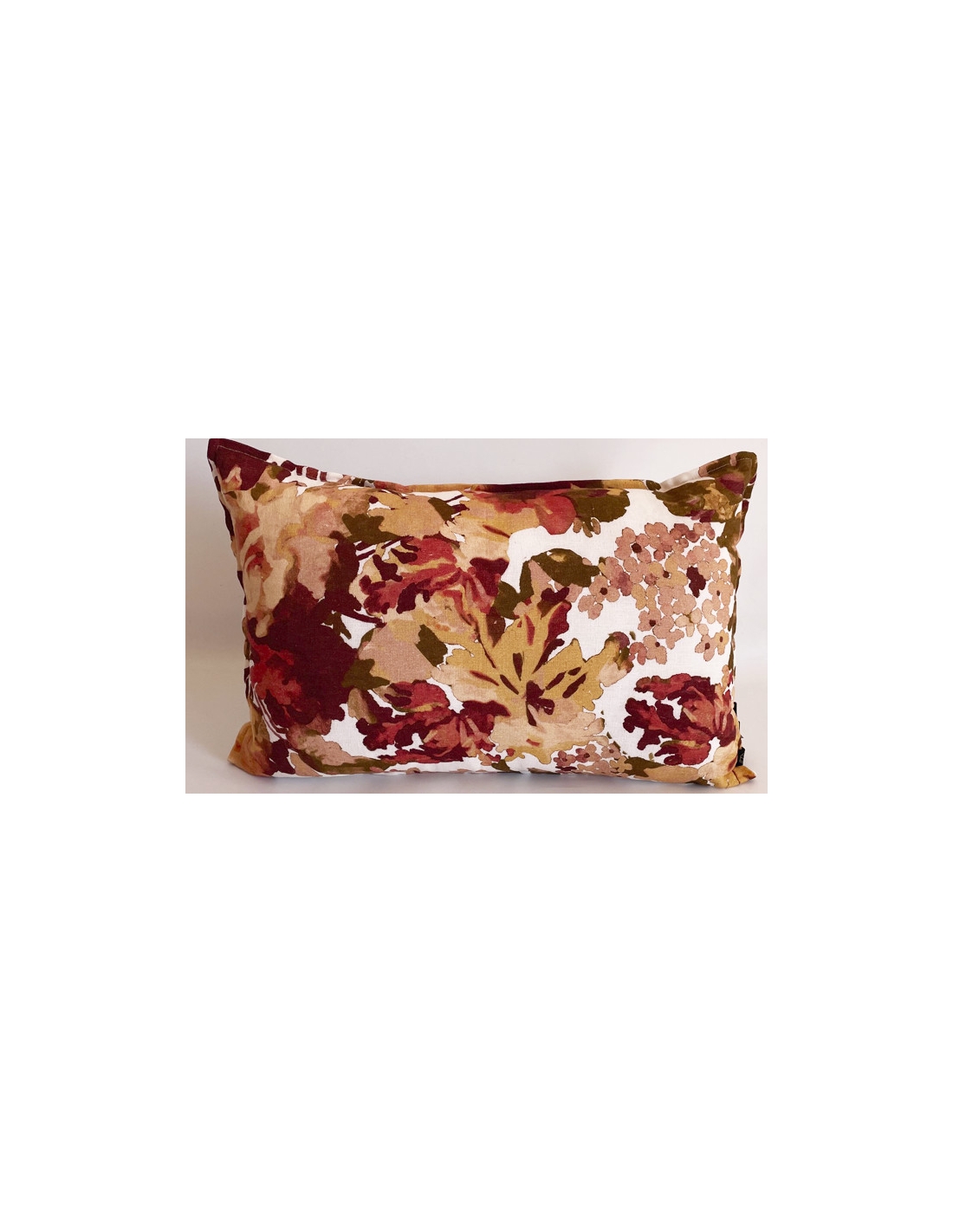 Funda de cojín estampada, con respaldo liso y cremallera en la parte trasera.