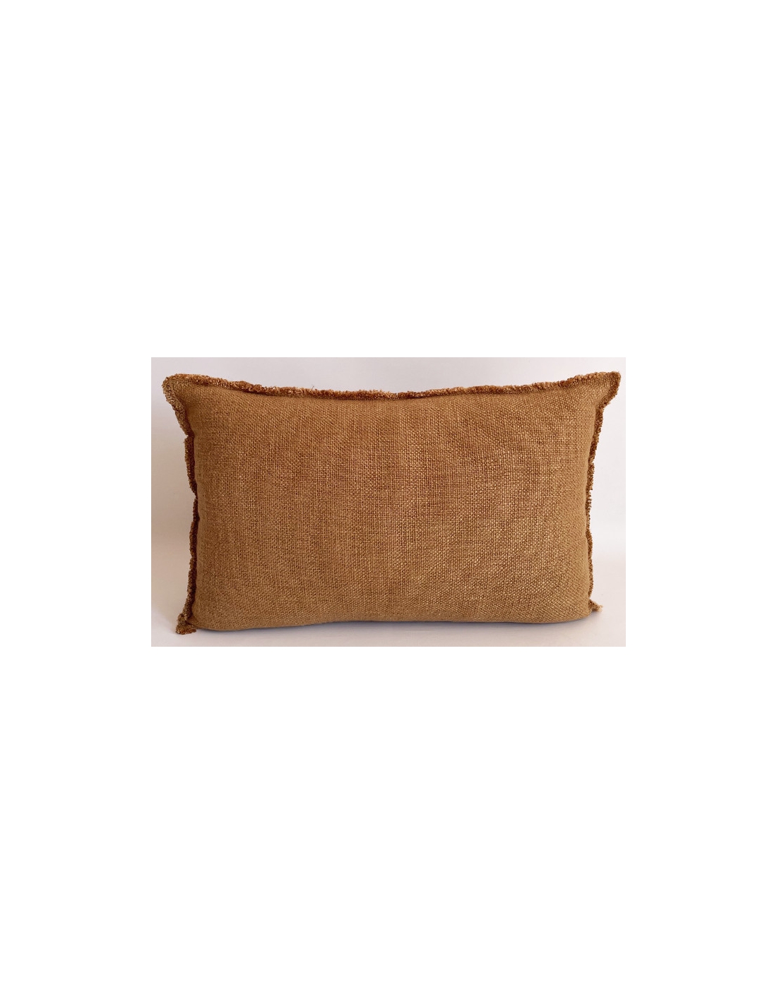 Funda de cojín lisa con flecos alrededor. Reversible y con cremallera invisible.