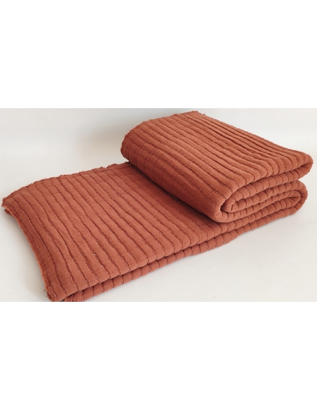 Manta de algodón con bordes deshilachados y bordado Kantha, que le confiere un suave y rústico efecto acolchado.