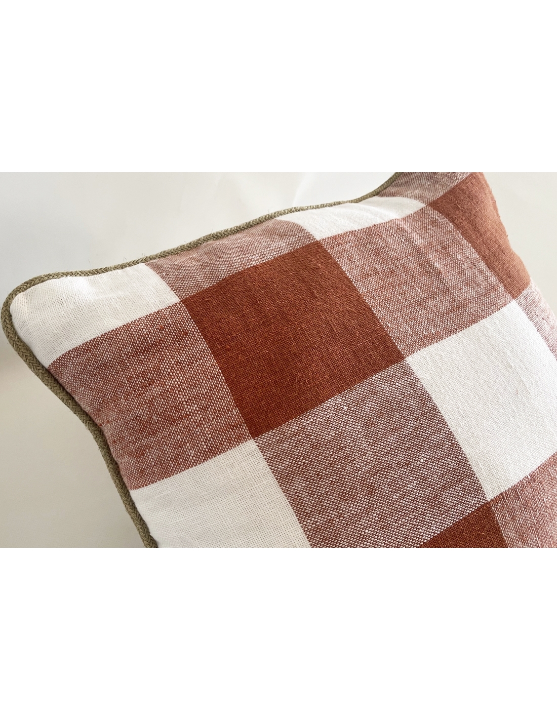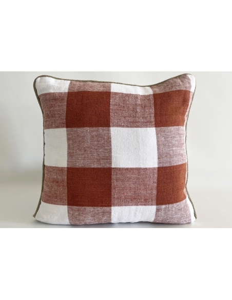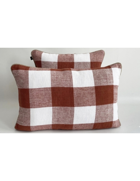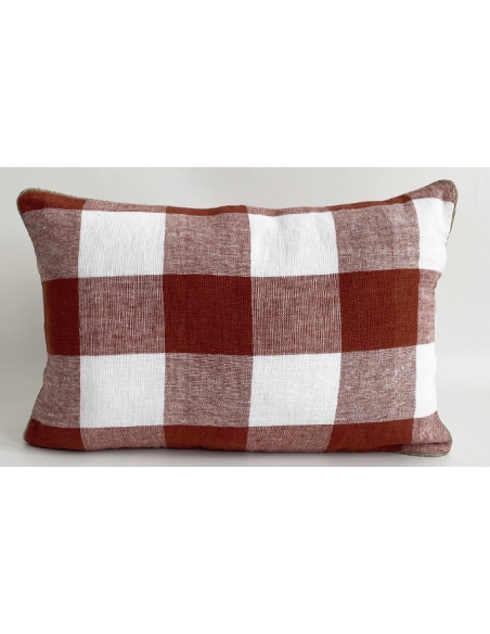 Funda de cojín estampada con cordón alrededor. Es reversible y tiene cremallera invisible.