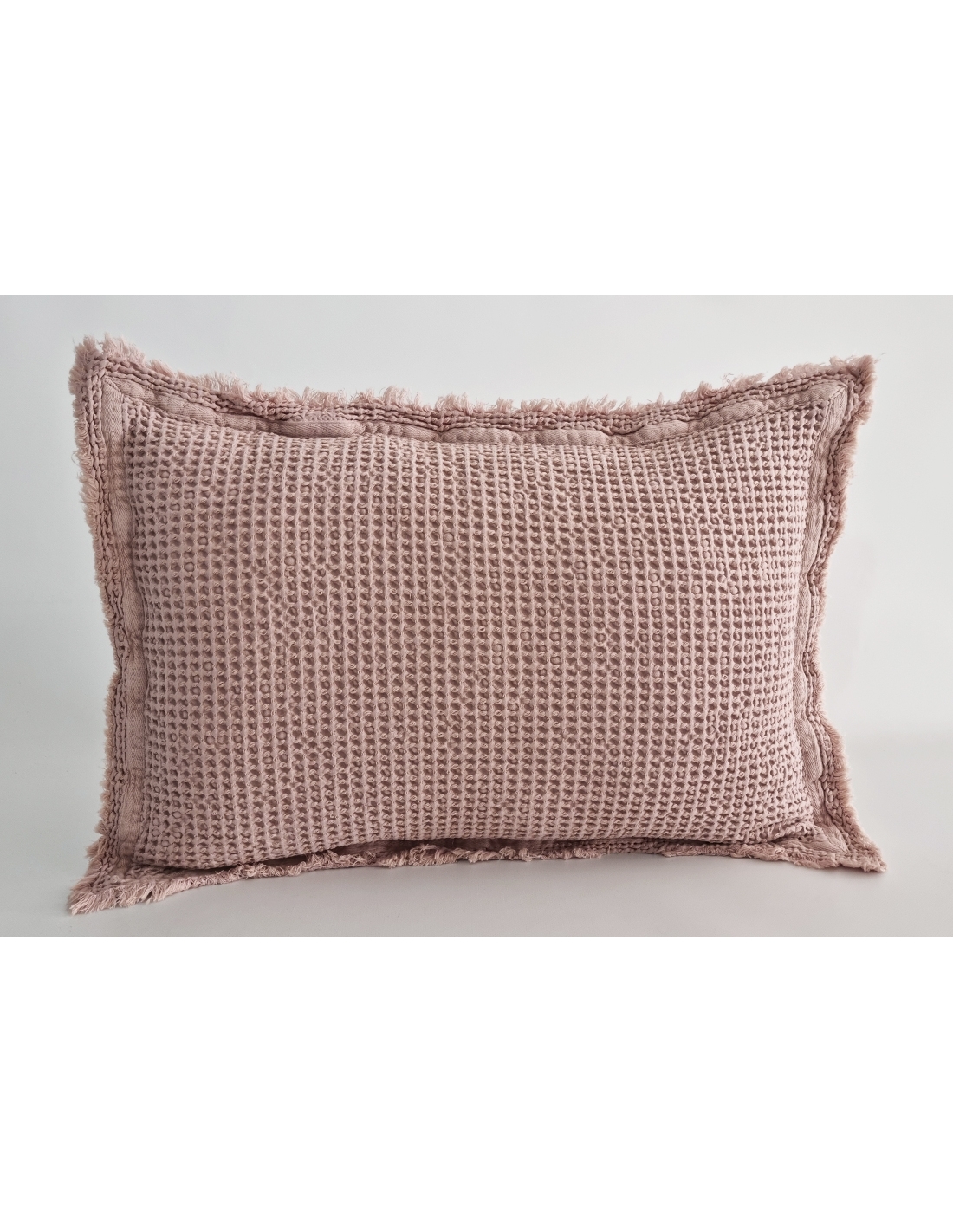 Funda de cojín con puntada "nido de abeja", lavada y preencojida, que la hace muy agradable al tacto y práctica, ya que no encoje al lavar.